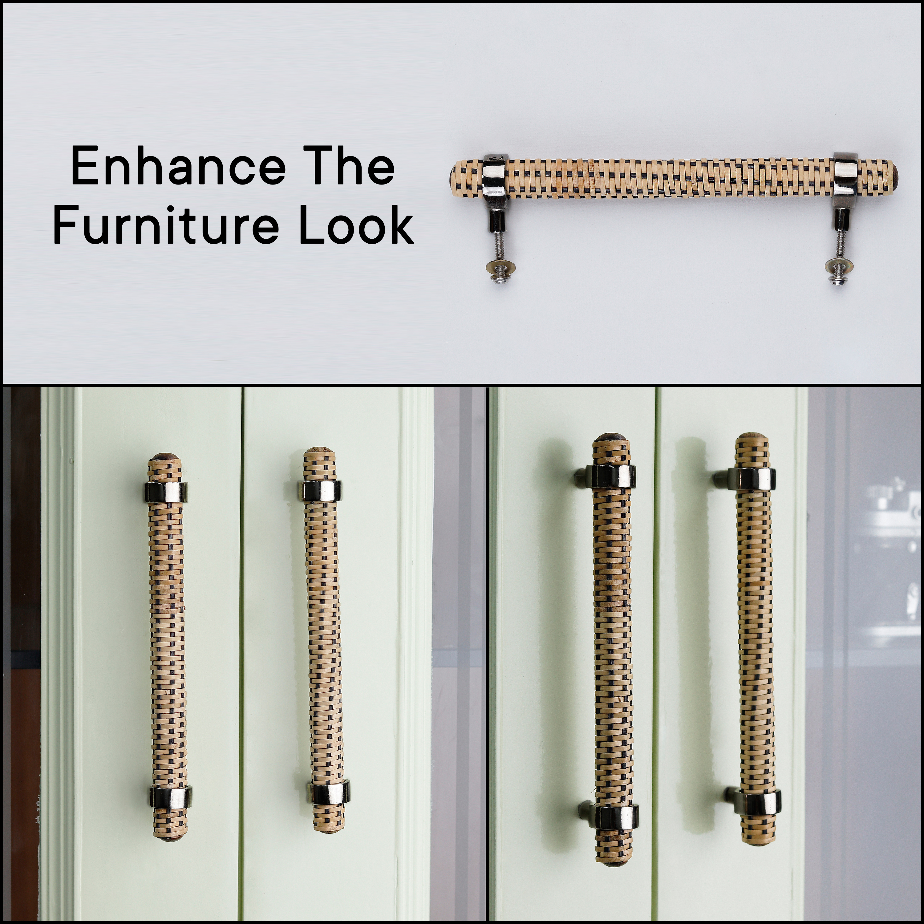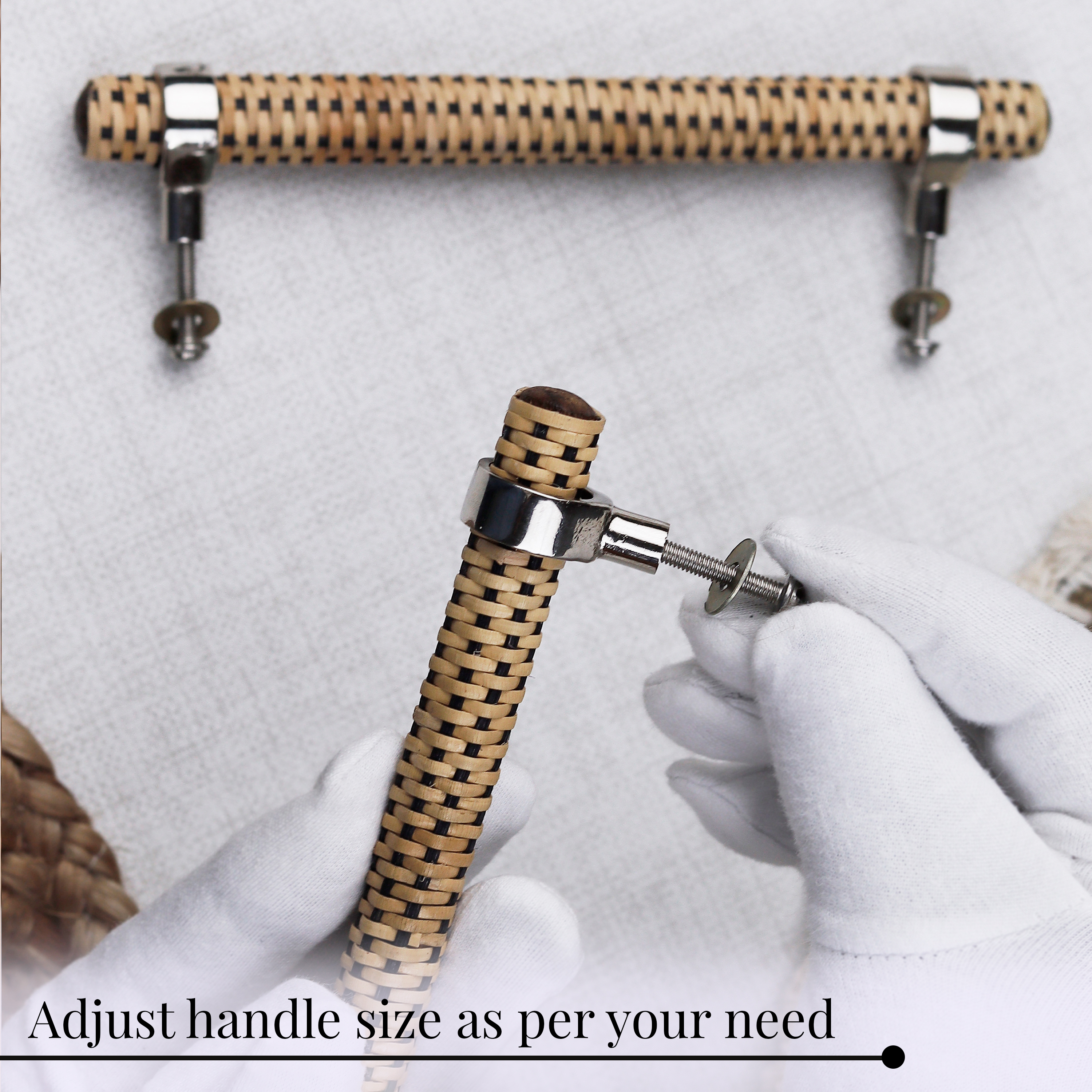 Made from durable natural black rattan, these handles provide a sturdy yet fashionable solution for upgrading your furniture. The adjustable design allows for versatility, enabling you to customize their fit for different drawer or cabinet sizes, while the sleek black color brings a contemporary touch to any room.