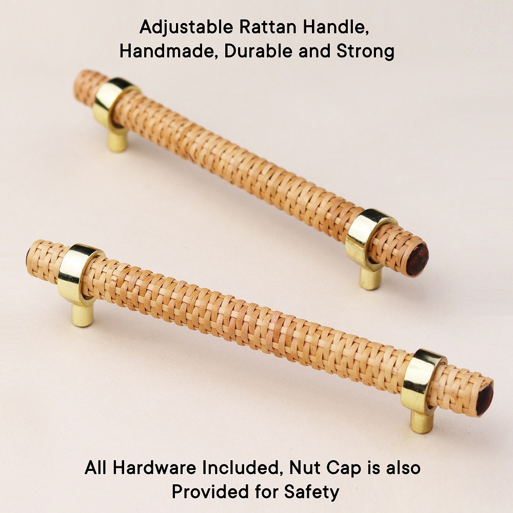 Adjustable Natural Round Rattan Drawer Handles (5 Inch)Natural Round Rattan Cabinet Handles. Ideal for Drawer, Dresser, Cabinet, Wardrobe, Cupboard and Almirah.