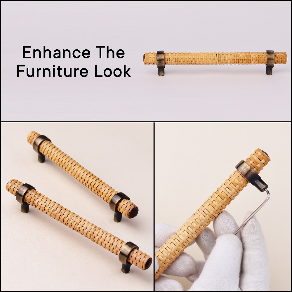 With their natural rattan design and adjustable metal hardware, these drawer handles offer a timeless, sustainable aesthetic. They are not only a functional addition to your furniture but also a stylish, eco-friendly choice that enhances the beauty of your home for years to come.