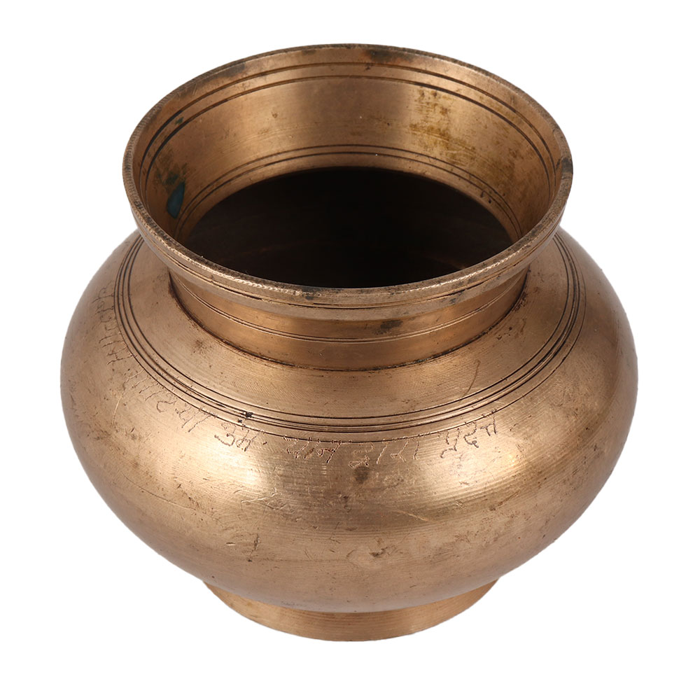 The brass water pot with an antique brown finish, also known as a Lota, is a remarkable piece handmade by highly skilled Indian artisans using traditional methods. It carries a rich cultural significance and finds its place in Indian households as a symbol of positive energy. It is also prominently used in temples for offering water to the revered Shivling or Shivalinga. Furthermore, the pot plays a vital role in havans and rituals, where it holds hot water for various sacred purposes. Crafted from high-quality brass, this Lota boasts an exquisite antique brown finish that adds a touch of elegance to its appearance. Its captivating design and fine craftsmanship make it a standout decorative piece that effortlessly enhances any space. It serves as an excellent gift option for your family, friends, or relatives during special occasions, festivals, or auspicious events, as it carries both aesthetic appeal and cultural significance. Embrace the beauty of tradition and the timeless allure of this brass water pot, and bring positive vibes and warmth to your surroundings.