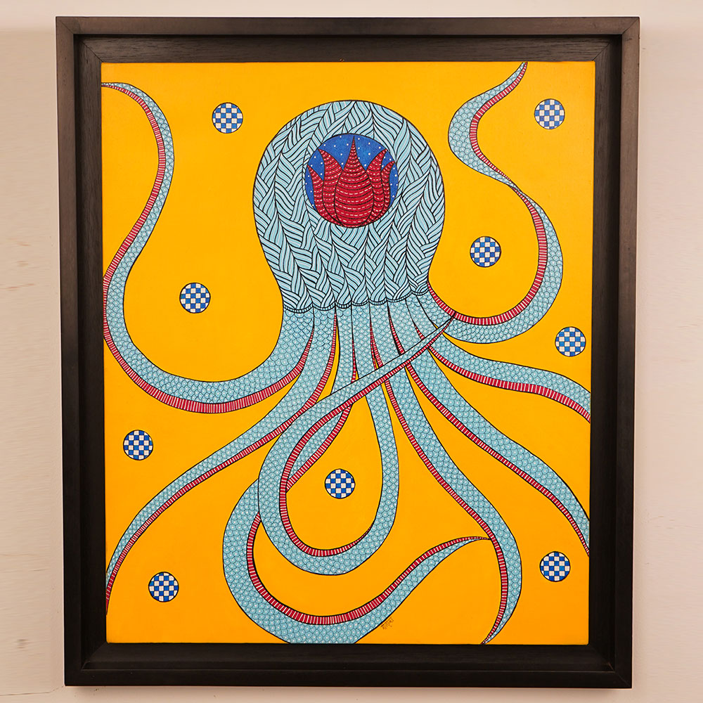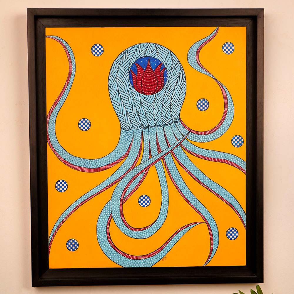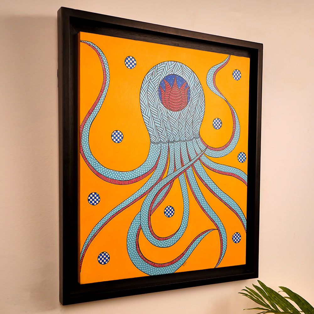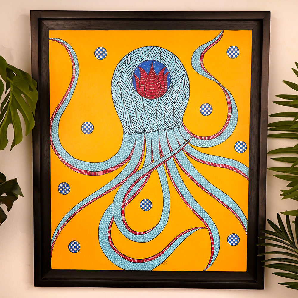 Prepare to be mesmerized by the breathtaking beauty of this exquisite octopus painting. Masterfully rendered using a blend of vivid acrylic paints and archival-quality inks, this stunning canvas showcases the majestic, undulating movements of one of the ocean's most enigmatic creatures. Whether you're a lover of marine life, a passionate art collector, or simply someone who appreciates the beauty of the natural world, this octopus painting is sure to captivate your senses and transform any room into a serene, oceanic oasis. The high-quality canvas construction ensures that this piece will retain its vibrant colors and sharp details for years to come, allowing you to enjoy its timeless allure for decades to come. This octopus painting is the perfect addition to the home of anyone who seeks to surround themselves with the calming, restorative energy of the sea. Hang it in your living room, bedroom, or office to instantly infuse the space with a sense of wonder and tranquility. Whether you're looking to add a touch of coastal charm to your decor or simply want to celebrate the beauty of the natural world, this stunning octopus painting is sure to become a cherished centerpiece in your home.