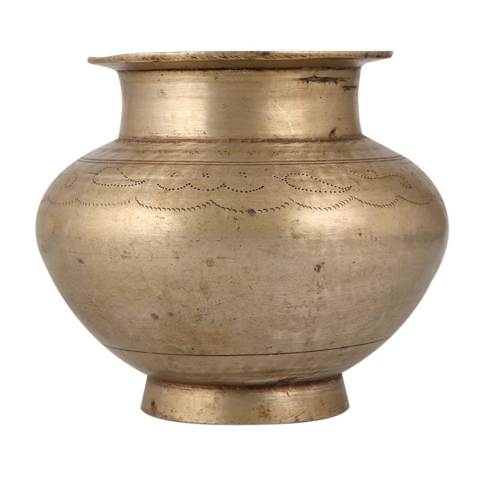Embrace the heritage and elegance of Indian craftsmanship with a stunning brass holy water pot that is a truly remarkable treasure. Buy this brass holy water pot online which is also known as a Lota, in an antique brown finish. This magnificent piece is traditionally handmade by skilled Indian craftsmen, making it a captivating addition to any decor. With a rich history spanning centuries, this brass pot has been an integral part of Indian households and temples. The holy water pot holds great significance in various religious practices. It is commonly used to offer water to deities, the sun god, and the Shivling. Additionally, it serves as a vessel for storing sacred water from the revered River Ganga. During Hindu rituals, auspicious functions, and havans, this pot takes center stage. This brass pot can be utilized as an indoor flower pot, enhancing the beauty of your living room or patio garden. Moreover, its timeless charm makes it an ideal gift for your family, friends, or relatives on special, festive, or auspicious occasions.
