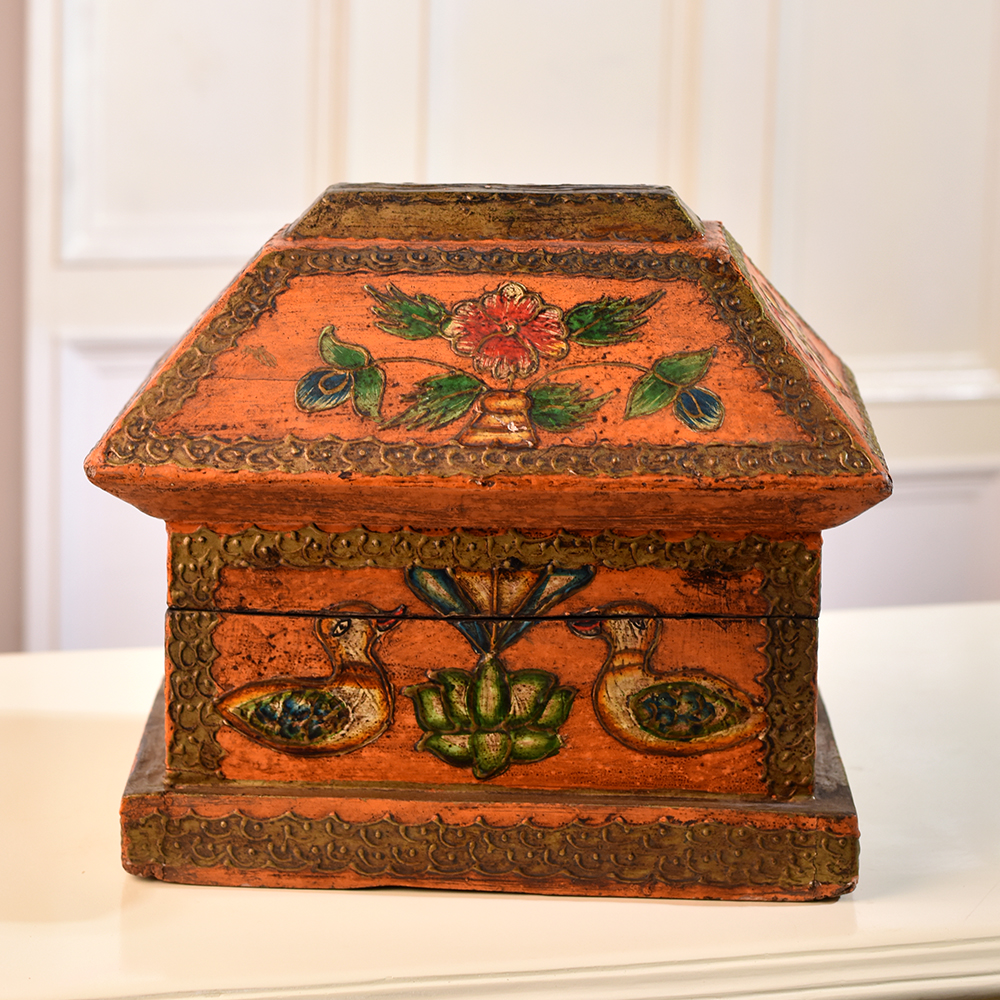 Buy a Hut-Shaped Wooden Jewelry Box online that is a captivating blend of functionality and artistry that transcends mere storage. This handmade masterpiece is more than just a box, it's a work of timeless elegance, designed for those who appreciate both form and function. Crafted from high-quality wood, the box features a unique hut shape that adds a touch of rustic charm to any space. Its multi-colour finish creates a vibrant and lively atmosphere, making it an ideal addition to your home, office, cafe, restaurant, or hotel. The meticulously engraved bird and flower motifs on the lid elevate the box to a level of artistic sophistication, showcasing the skill and precision of our craftsmen. This versatile piece is not just a practical storage solution for your jewelry and small items but also serves as a captivating decorative element. Its aesthetic appeal makes it suitable for display at exhibitions, turning any showcase into a visual delight. Celebrate special occasions by gifting this exquisite box to your family, friends or relatives, offering them a blend of beauty and utility that will be cherished for years to come.