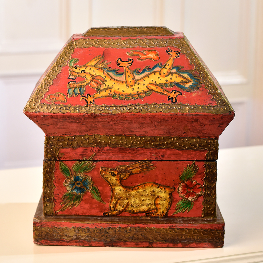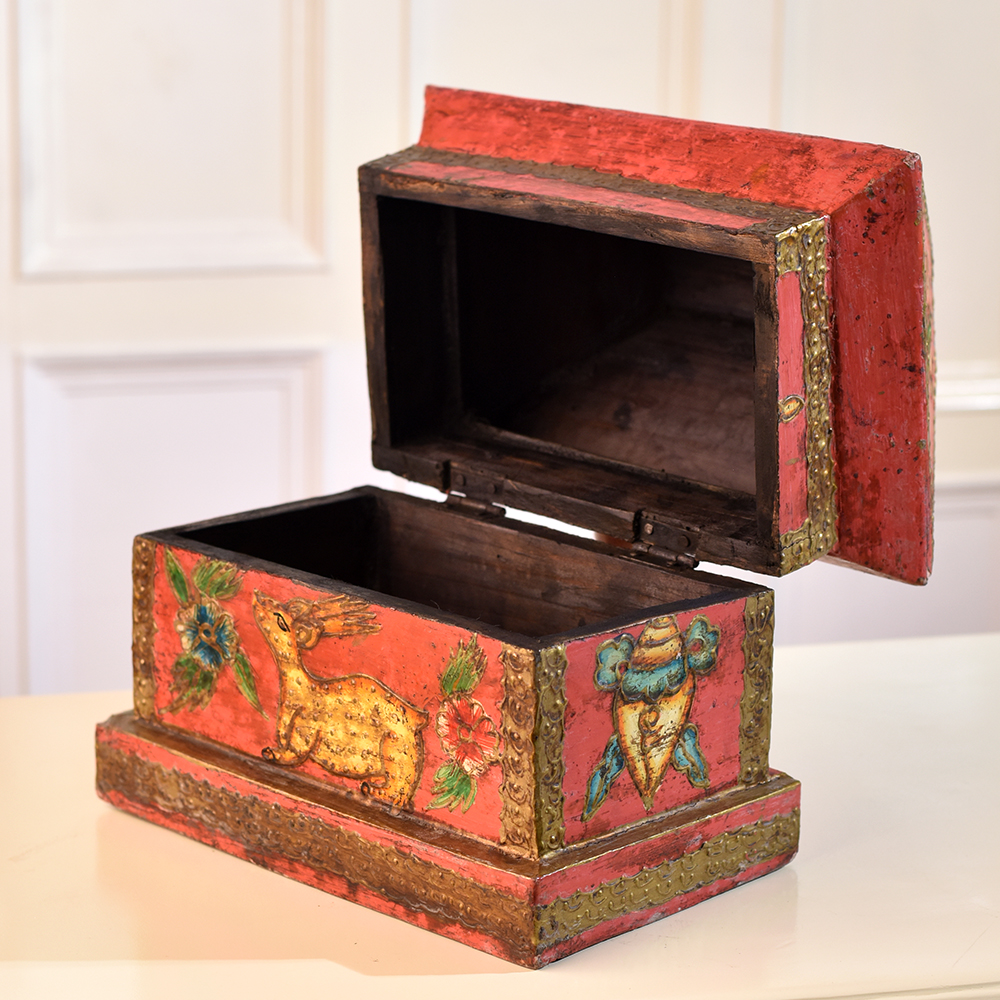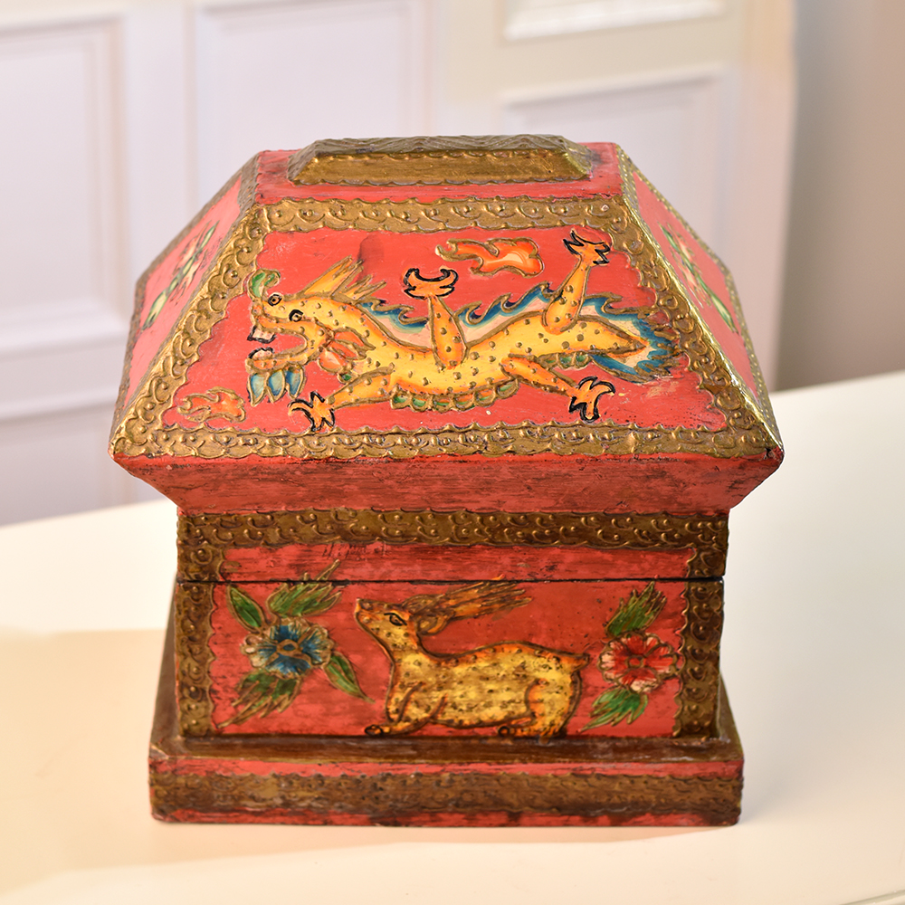 Buy a Wooden Hut-Shaped Jewelry Box online that is a fusion of functionality and aesthetic appeal. This charming box is not merely a storage solution, it's a piece of art designed to elevate any space. Crafted with precision, the hut shape adds a rustic charm, while the multi-colour finish brings vibrancy to your surroundings. Adorned with intricate engravings of dragons, animals, and flowers, this box tells a tale of craftsmanship and attention to detail. The delicate designs create a captivating visual that adds a touch of elegance to your home, office, cafe, restaurant, or hotel. Its versatility extends beyond personal spaces, making it a captivating addition to exhibitions. Perfect for storing jewelry and small items, this box doubles as a stunning display piece. Its beauty transcends boundaries, making it an ideal gift for your near and dear ones on special, festive, or auspicious occasions.