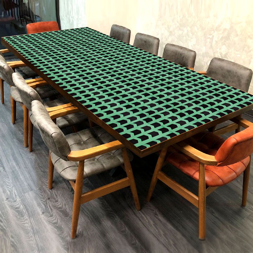 Introducing the handcrafted acrylic table top designed by skilled Indian artisans, a captivating decorative piece for any space. This high-quality table top is meticulously crafted with a combination of wood, acrylic, and resin, resulting in a stunning and durable creation. With a vibrant green background adorned with intricately engraved black arrows, this unique design adds a touch of elegance to any setting. Not only does this acrylic table top serve as a visual delight, but it also functions as a practical solution. It acts as a protective layer, shielding your table from dust and adding a stylish touch to your home, office, hotel, or restaurant. The beautiful designs and vibrant colours make it an eye-catching addition to any end table or desk. This remarkable piece is more than just a decoration; it's also an ideal gift for your loved ones on special or festive occasions. Showcasing the artistry of Indian craftsmanship, this acrylic table top combines functionality and aesthetics, making it a must-have item for those seeking both beauty and practicality in their surroundings.