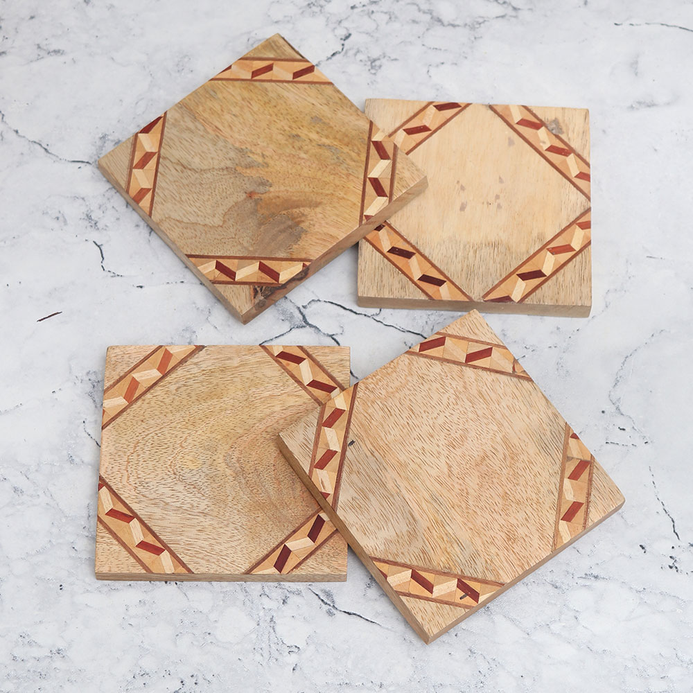 Elevate your home or office decor with the Adorning Wooden Coasters, a perfect blend of functionality and design. Crafted from high-quality wood, these coasters feature an elegant and natural finish that adds a sophisticated touch to any table setting. Whether used for hot drinks, cold beverages, or as a decorative accent, this pack of four coasters ensures that your surfaces stay protected in style. These coasters make a practical and attractive addition to any room, providing both beauty and protection for your furniture.