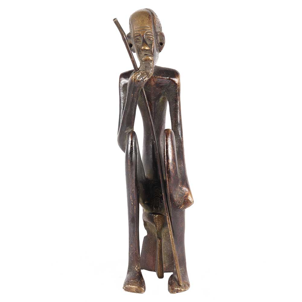 Master craftsmen in India have meticulously handcrafted this exquisite african brass tribal statue of an old guy with a stick. A fantastic decorative element for home, businesses, industries, or bungalows.