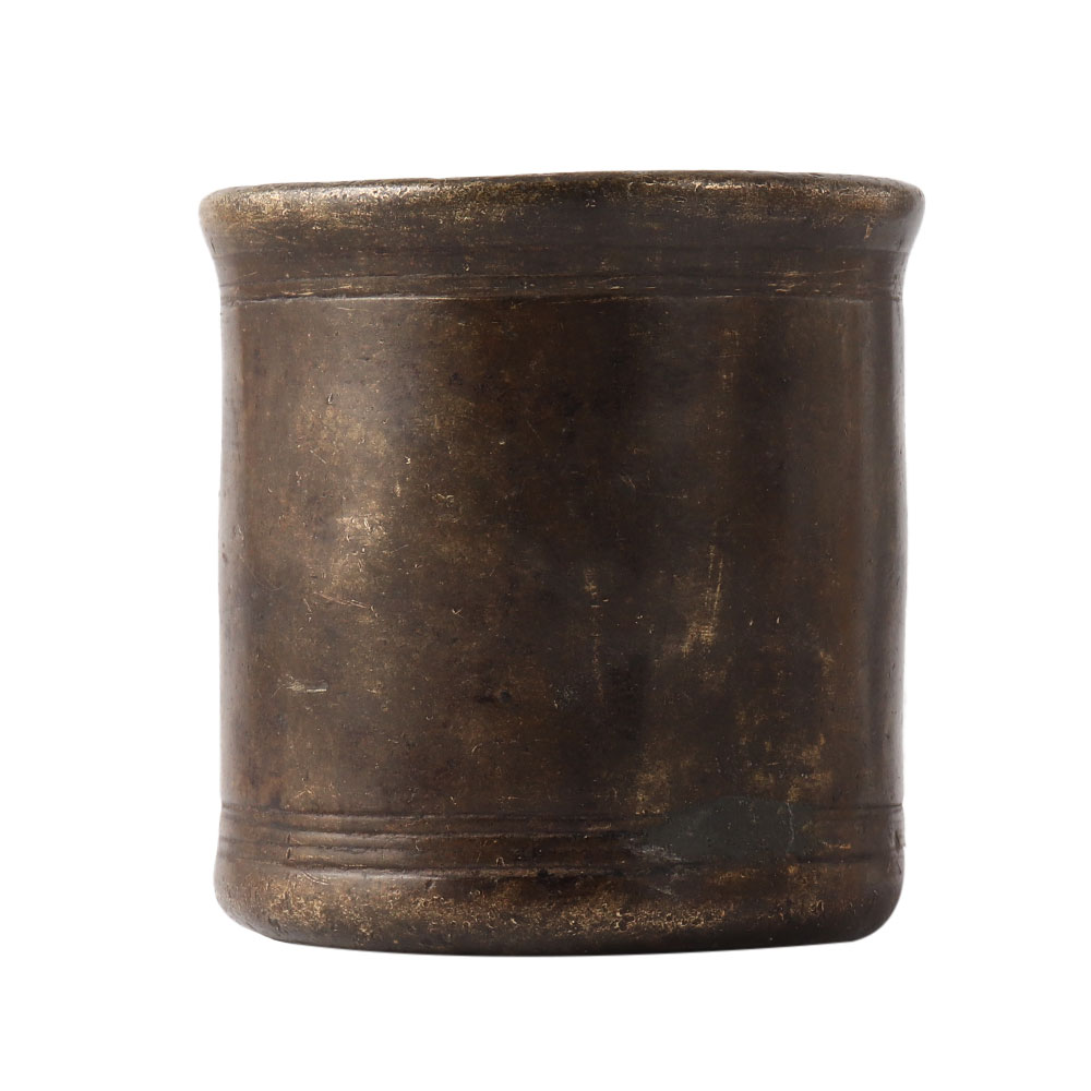 A handmade dark finish brass panch patra cup, which is used to hold water and use it during puja rituals, is an essential component of any puja or pooja. Chanting the energising mantra energises the water that has been stored.