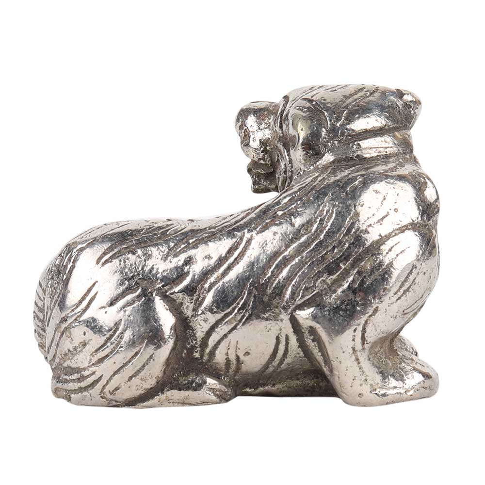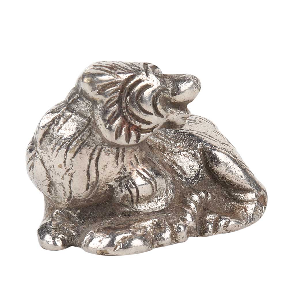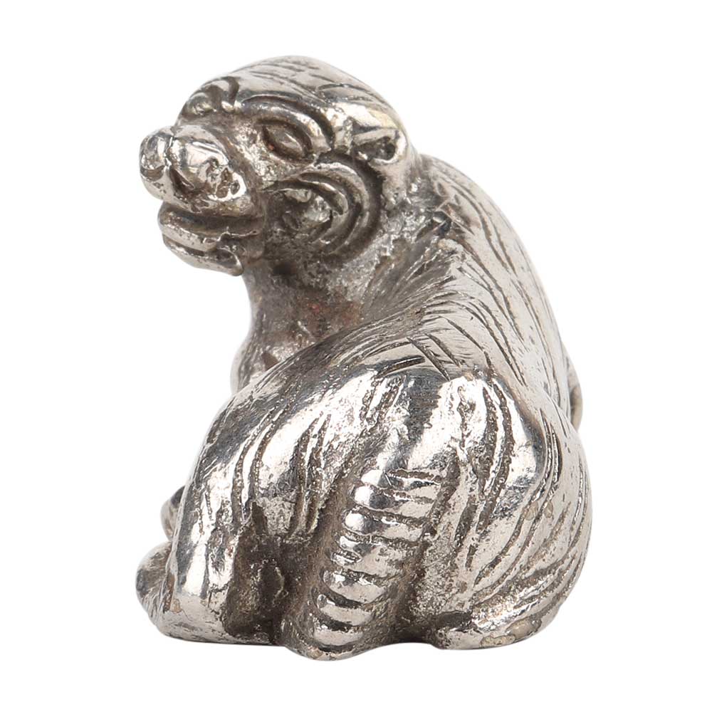 Hand made silver Grizzly bear sitting statue made by the local craftsman with detailed carvings where the facial features and shaggy hairs . Use it as a showpiece , table decoration , Gift it to your near and dear ones on dial, Christmas, new year and birthdays.