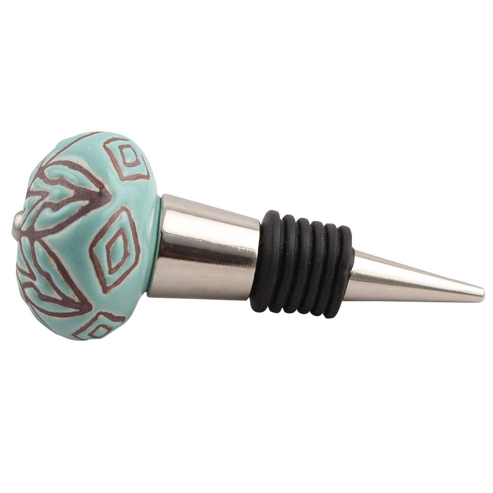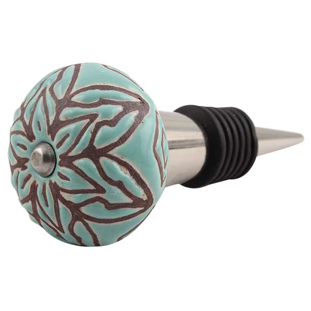 Amarylis Floral Etched Ceramic Wine Stopper.zinc alloy wine bottle stopper with attractive Jute Bag Packaging.