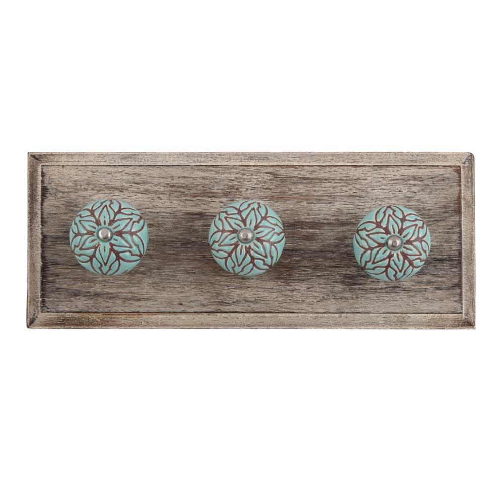 Amarylis Floral Etched Ceramic Wooden Hook. A Perfect Complement to the Soft Tone of the Wood are these White Traditional Hat & Coat Hook Made of Genuine Porcelain and Brass. It can be use to Hang Jewellery, Leashes, Towels, Scarves, Light Weight Sweaters, Caps Etc.