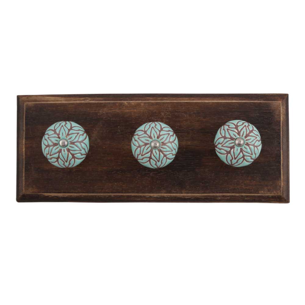 Amarylis Floral Etched Ceramic Wooden Hook. A Perfect Complement to the Soft Tone of the Wood are these White Traditional Hat & Coat Hook Made of Genuine Porcelain and Brass. It can be use to Hang Jewellery, Leashes, Towels, Scarves, Light Weight Sweaters, Caps Etc.