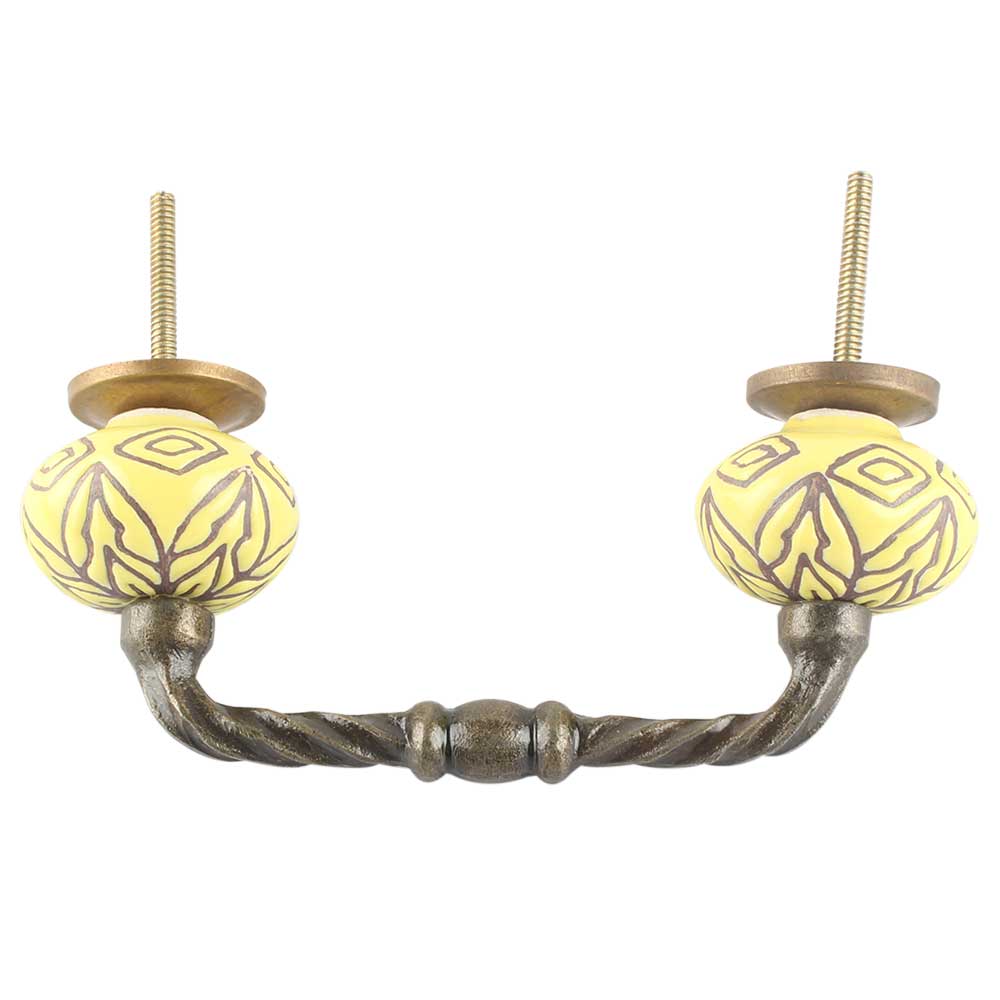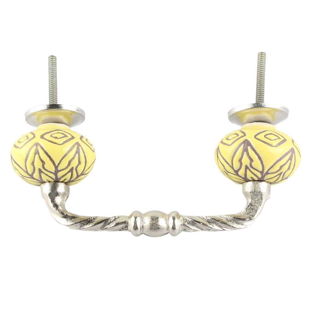 Amaryllis Etched Ceramic Cut Bridge Handle. Ideal for Drawer, Dresser, Cabinet, Wardrobe, Cupboard and Almirah etc.