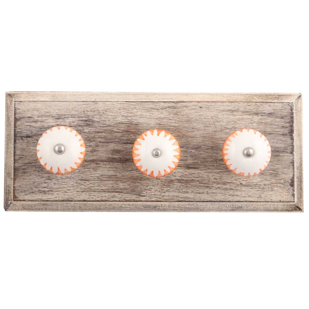 Amber Chakra Ceramic Wooden Hook. A Perfect Complement to the Soft Tone of the Wood are these White Traditional Hat & Coat Hook Made of Genuine Porcelain and Brass. It can be use to Hang Jewellery, Leashes, Towels, Scarves, Light Weight Sweaters, Caps Etc.