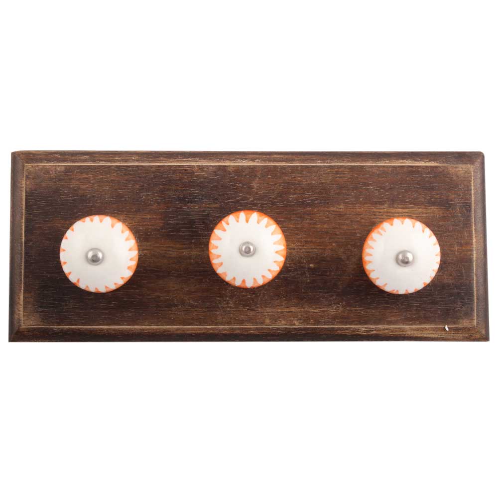 Amber Chakra Ceramic Wooden Hook. A Perfect Complement to the Soft Tone of the Wood are these White Traditional Hat & Coat Hook Made of Genuine Porcelain and Brass. It can be use to Hang Jewellery, Leashes, Towels, Scarves, Light Weight Sweaters, Caps Etc.