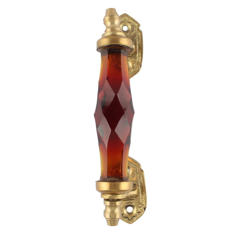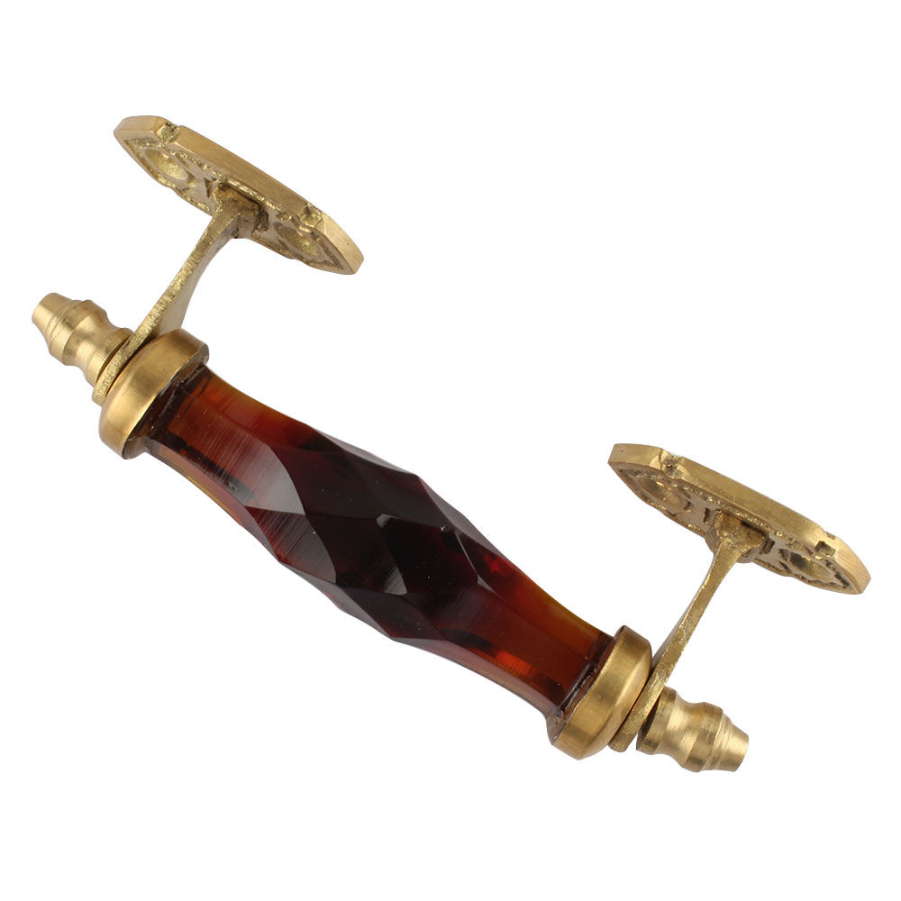 The eye-catching amber cut glass serves as the focal point of this door handle, with its warm golden tones infusing elegance and charm. The intricate cuts in the glass create texture and reflect light beautifully, making it a stunning highlight on any furniture.