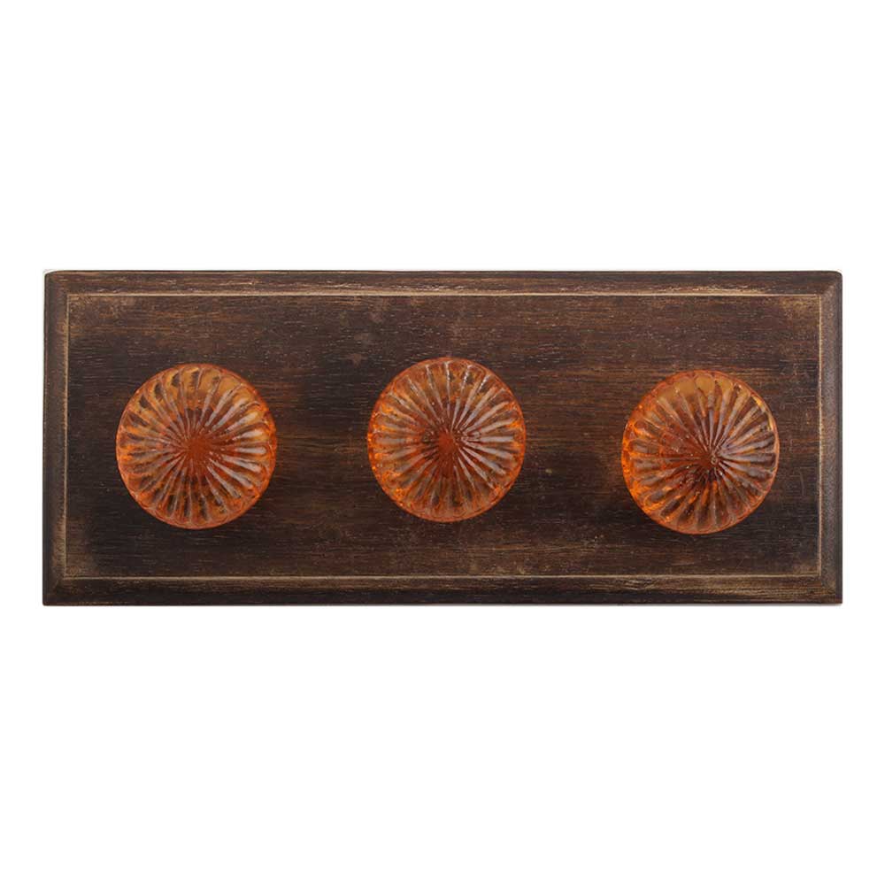 Amber Glass Wooden Hook. A Perfect Complement to the Soft Tone of the Wood are these White Traditional Hat Coat Hook Made of Genuine Porcelain and Brass. It can be use to Hang Jewellery, Leashes, Towels, Scarves, Light Weight Sweaters, Caps Etc.