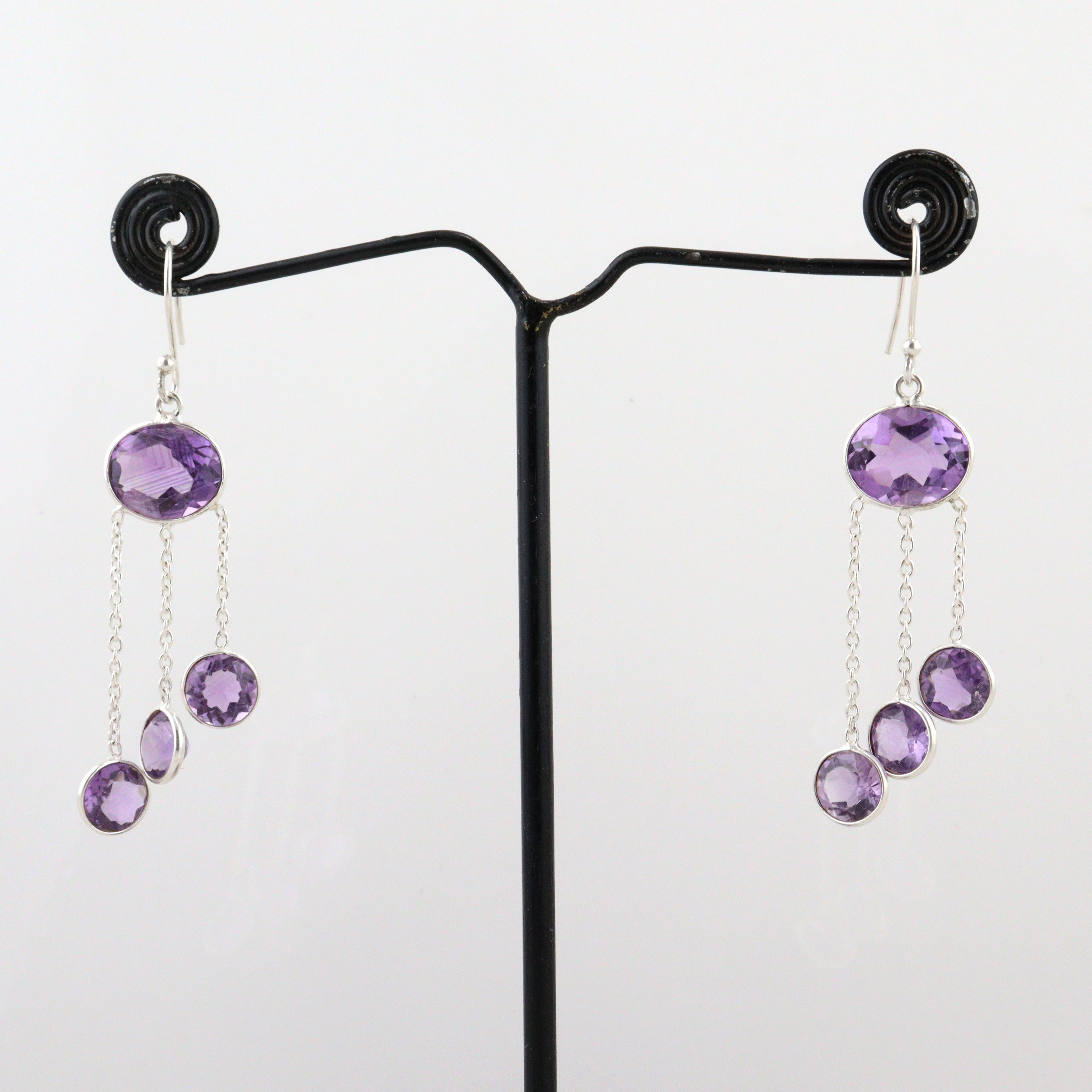 The Amethyst Gemstone Dangle Earrings capture the serene essence of nature’s most spiritual gemstone. Handcrafted from fine brass and plated in luminous 925 sterling silver, each earring features a radiant amethyst gemstone — symbolizing calmness, clarity, and inner strength. The delicate silver frame enhances the gemstone’s natural violet hue, creating a perfect harmony between artisan craftsmanship and timeless sophistication. Ideal for gifting, these earrings bring elegance and positive energy to any occasion.