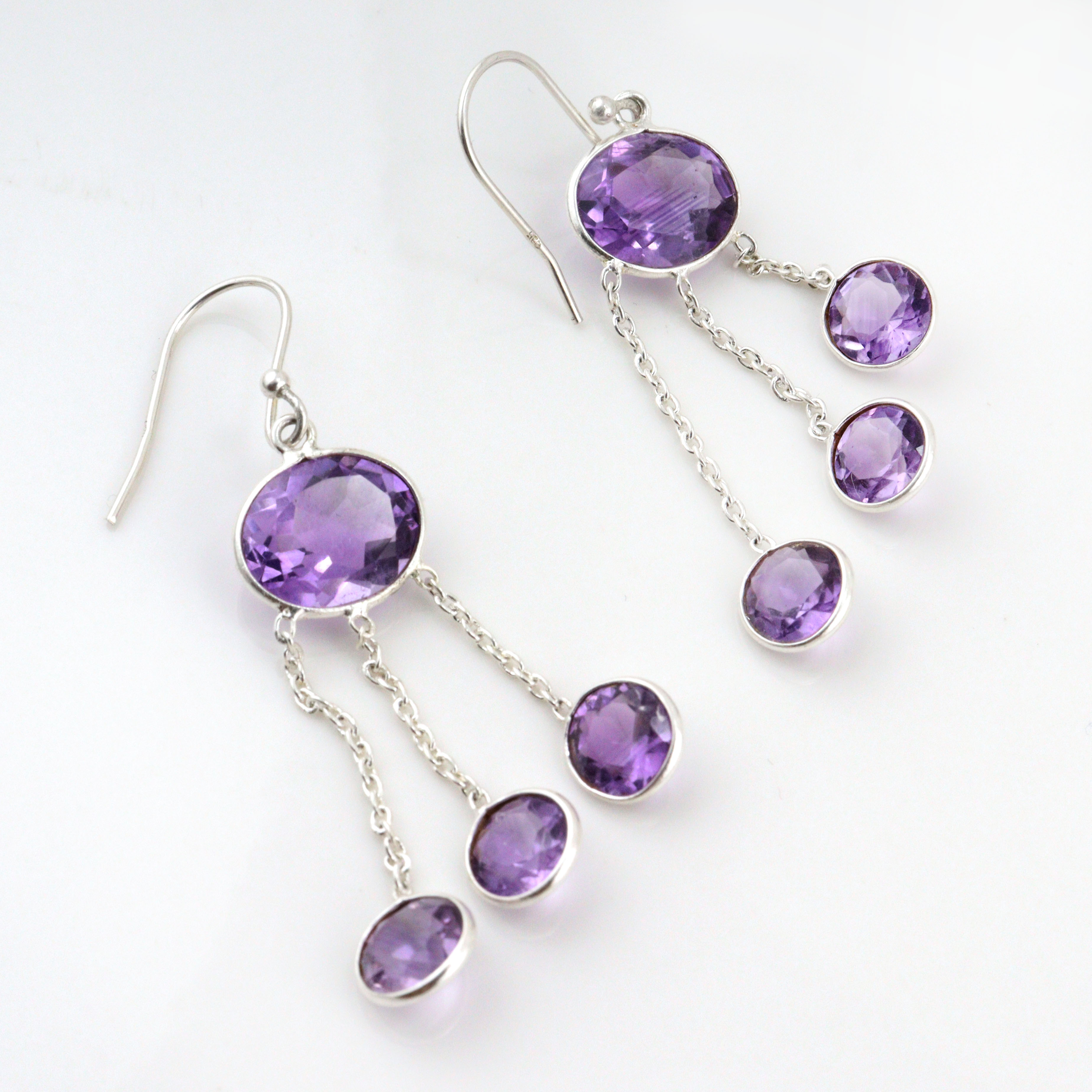 Yes, these earrings feature genuine amethyst stones, each selected for its clarity and deep color.