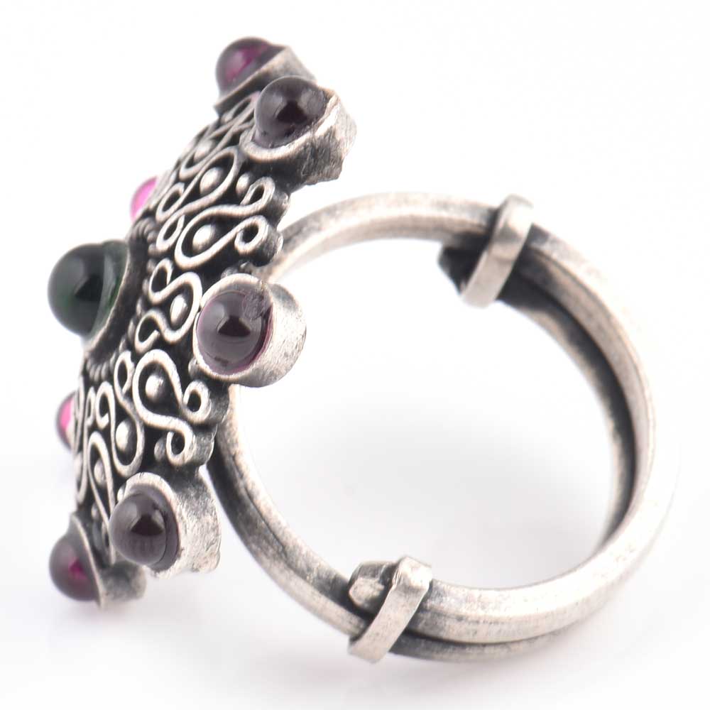 Amethyst and scrolled motifs 92.5 Sterling silver Ring is sure a party stopper and can be worn by your sister, friend, wife and colleague to be worn during weddings, birthdays, cocktail party or other official functions.