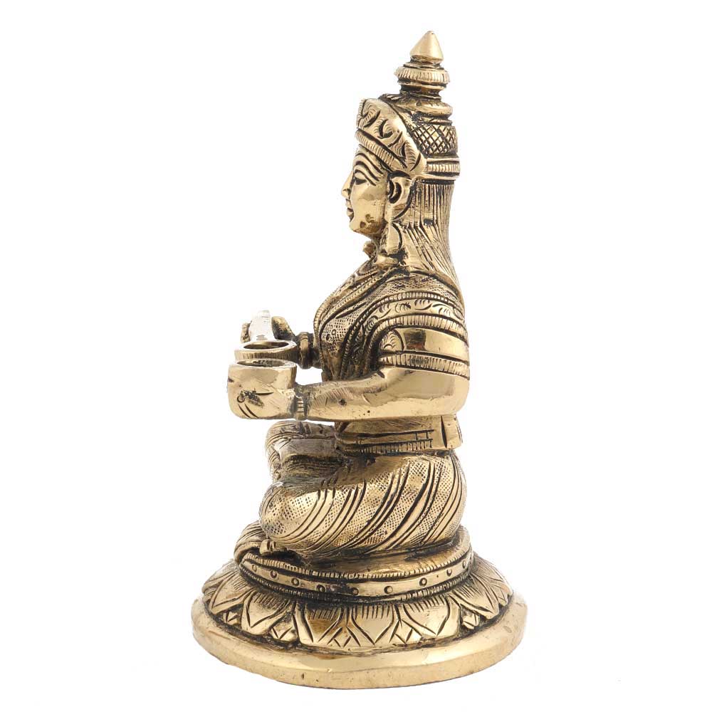 Clasping her favorite musical instrument, this idol has been crafted in with incredible perfection. The antique piece is universally appealing – looks good at almost all places in your home, be it decor or in the pooja room. The idol is also a suitable gift for grandparents and elderly relatives.