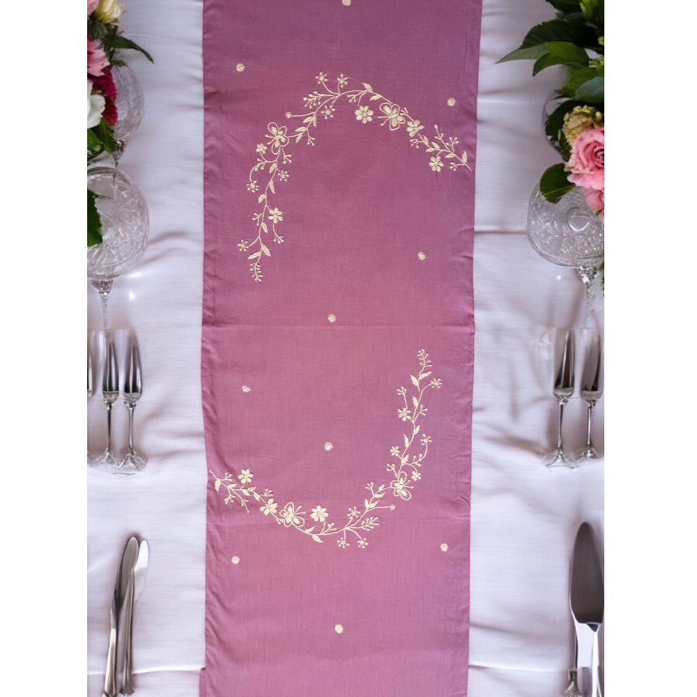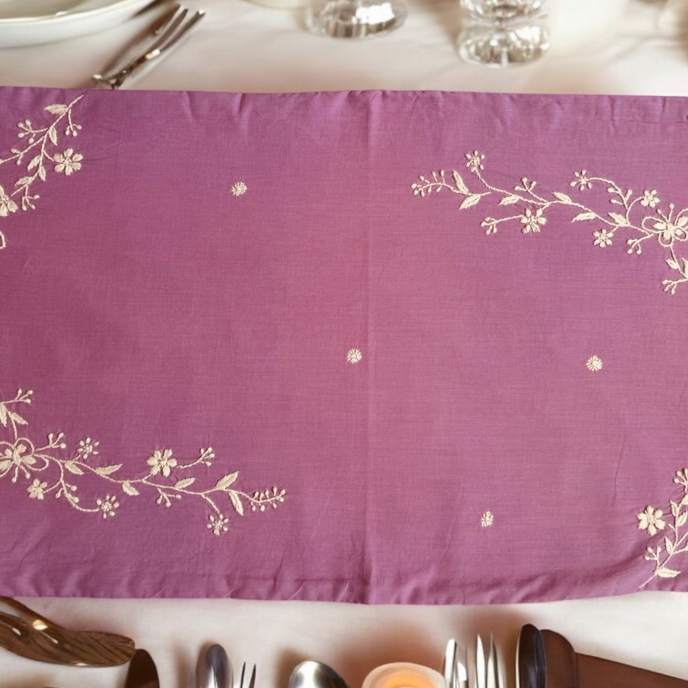 Anthophile Runner,Elevate your table setting with the Anthophile Collection table runner, a perfect blend of elegance and nature-inspired design. This runner showcases intricate floral chikankari embroidery complements minimalist decor ideal for both formal dinners and casual gatherings. Whether draped over your dining table, sideboard, or coffee table, it adds a touch of sophistication and warmth, celebrating the beauty of flowers in your home decor.