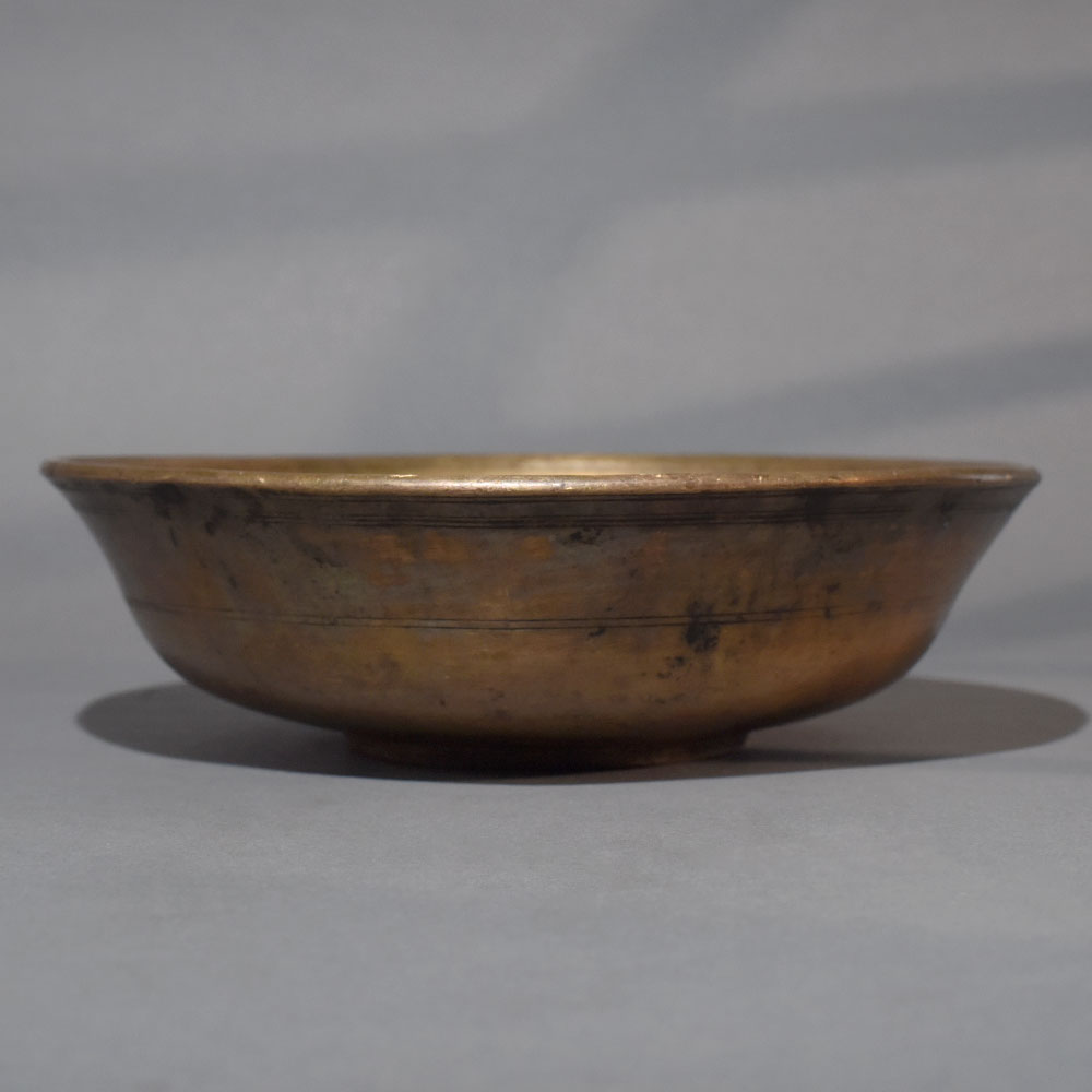 This brass bowl originates from Himalayan ritual traditions, where vessels were created to support spiritual practice. The bowls aged surface and simple form speak of authenticity and purpose rather than decoration. Traditionally used in ceremonial god bathing, it holds water or floral infusions used during worship. Brass was believed to preserve purity, making it a preferred material for such sacred practices. As a flower bowl, it adds warmth and visual harmony to altars and prayer spaces. It also functions as a meaningful decor object, blending seamlessly into both traditional and contemporary interiors. Its patina reflects devotion, time, and craftsmanship passed down through generations.