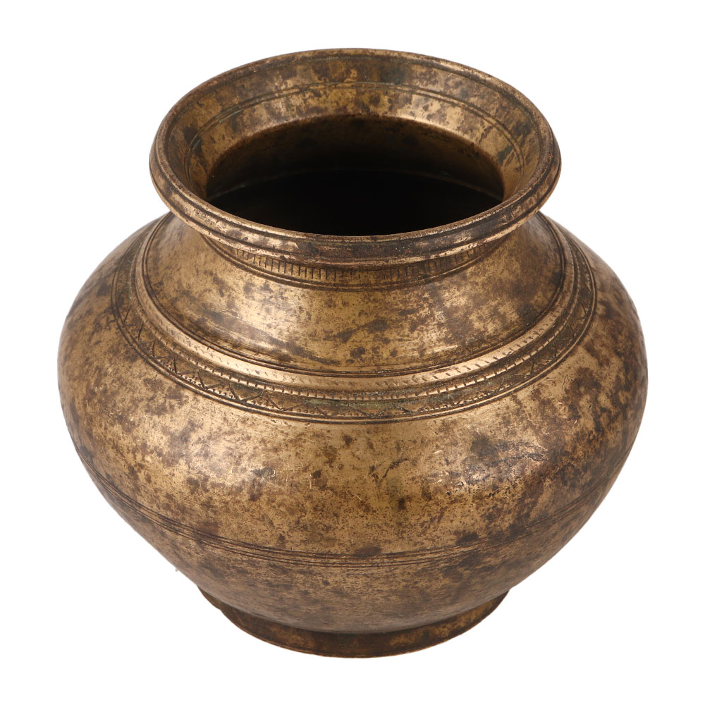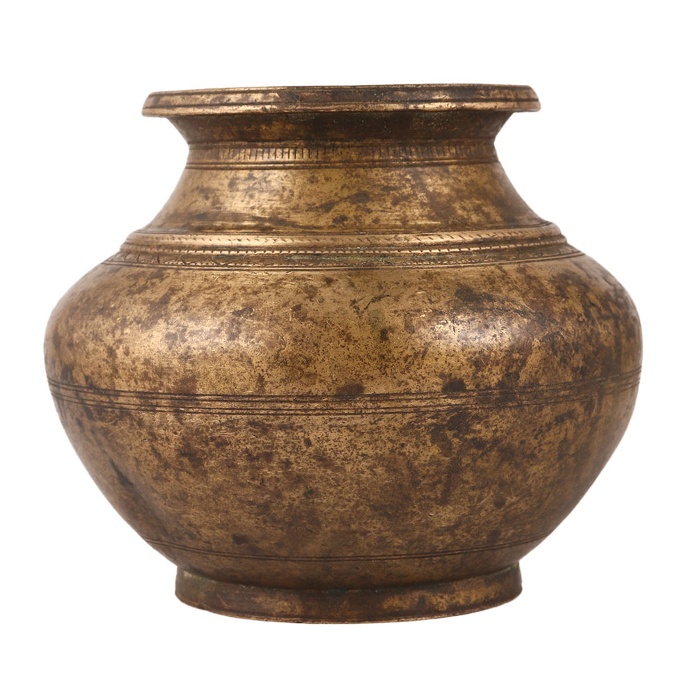 An antique brass holy water pot which is a true testament to artistry and spirituality. With its antique brown finish and meticulous craftsmanship, this Lota stands as a captivating piece of decor. Handmade by highly skilled and experienced Indian artisans using traditional methods, it is made from high-quality brass, ensuring its durability and timeless beauty. This sacred vessel finds its purpose in temples, where it is used to offer water to the revered Shivling, symbolizing the absorption of negativity from the environment and the dissemination of positive energy. Additionally, it serves as a vessel for offering water to the Sun God, aiding in the maintenance of spiritual and mental equilibrium. Ideal for havans, Hindu rituals, and auspicious functions, this Lota serves as a repository for holy water. Its versatility extends beyond religious practices, as it can also be utilized as an indoor flower pot, adorning your home or office with elegance and charm. Moreover, this Brass Holy Water Pot makes for an ideal gift to convey your blessings and good wishes to your loved ones on special, festive, or auspicious occasions.