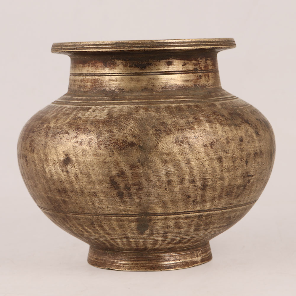 This Brass Holy Water Pot is a cherished artefact essential to Hindu rituals and daily practices. Crafted by seasoned Indian craftsmen from the cultural treasure troves of South India, this holy water or lota embodies the perfect union of tradition and craftsmanship. Cast from high-quality brass and exuding an antique brown patina finish, it radiates an air of antiquity and authenticity, seamlessly blending with diverse settings. This versatile piece holds a significant role in Hindu rites, gracing havans and prayer rooms as a vessel for holy water, bestowing positive vibrations that infuse serenity into the surroundings. A multifaceted accessory, this lota adorns your space with grace. Whether placed before a Shivling or offered to the Sun God, its presence enriches spiritual connections. Its allure extends beyond rituals, enhancing interiors with its captivating charm. Use it to embellish your home, office, hotel, restaurant, cafe, or shop, or add it to your vintage collection for an enchanting touch of heritage. More than an artefact, it's an ideal gift for cherished ones on special occasions, infusing blessings and grace into their lives.