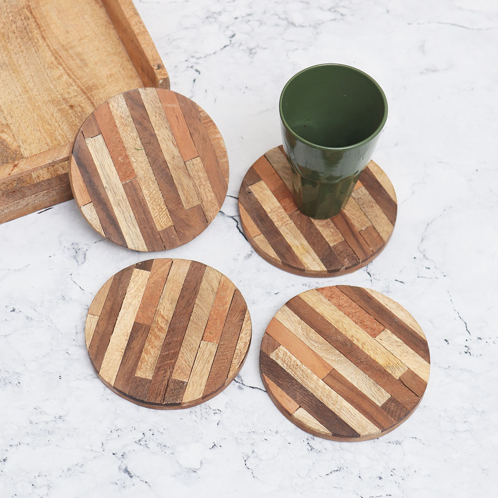 Buy a Pack of 4 handmade wooden tea coasters online from our website which is crafted by highly skilled and experienced Indian artisans. Made from high-quality wood, these coasters boast a circular shape and come in various shades of brown, lending them an enchanting antique finish. These coasters not only serve a practical purpose but also double as decorative pieces for your home or office. Designed to hold water, tea, juice, or coffee glasses, these wooden tea coasters are perfect for use in any setting, be it at home, office, restaurant, hotel, or cafe. By placing these coasters under your beverage glasses, you can effortlessly prevent stains on your surfaces, keeping them pristine for longer periods. Each coaster is carefully constructed with attention to detail, ensuring a smooth and durable surface. These coasters also make for exceptional gifts on special or festive occasions. Showcasing the rich craftsmanship and traditional artistry of Indian artisans, this wooden tea coaster set is a thoughtful present for your family, friends or relatives.