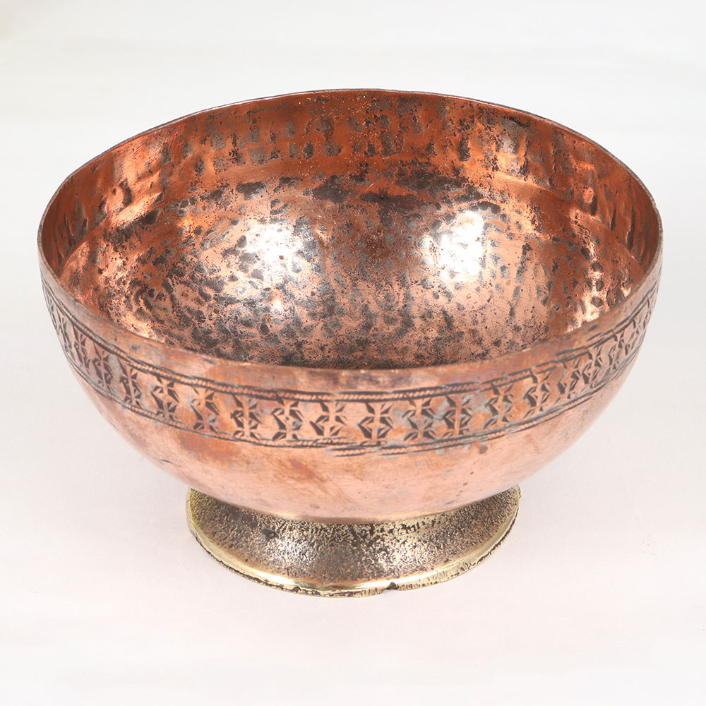 Immerse your space in timeless elegance with our Vintage Copper Bowl. Crafted by highly skilled artisans in the intricate tradition of Islamic Art, this piece is a testament to the rich heritage of handmade craftsmanship. The bowl boasts a warm antique brown finish that accentuates the meticulous engravings adorning its surface, telling stories of a bygone era. Fashioned from high-quality copper, this versatile piece serves as a captivating decoration for homes, offices, restaurants, hotels, or cafes. Its multifunctional design allows it to transform into an indoor flower pot, adding a touch of nature to your surroundings. This vintage masterpiece isn't just a decor item, it's a collectible that breathes life into any setting. Its charm extends beyond aesthetics, making it a thoughtful gift for your family, friends or relatives during special, festive, or auspicious occasions.