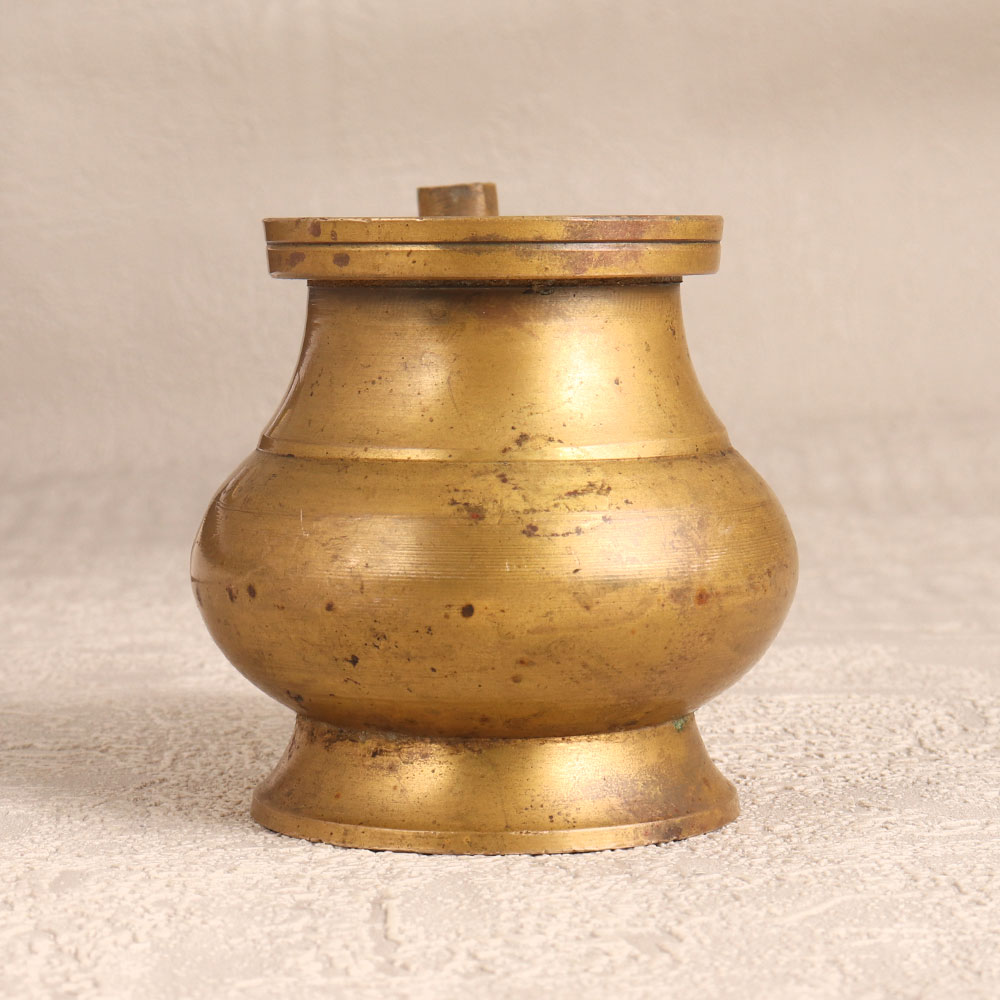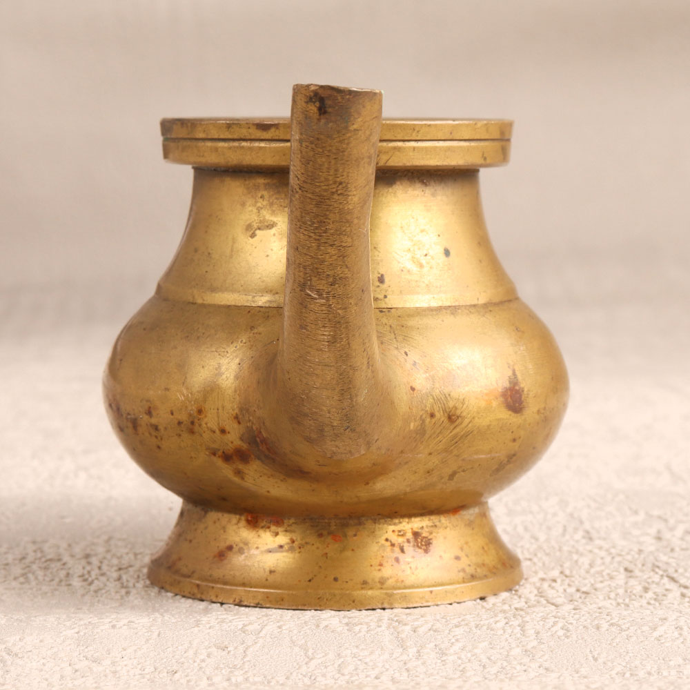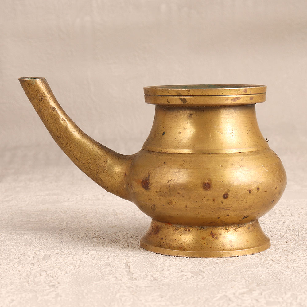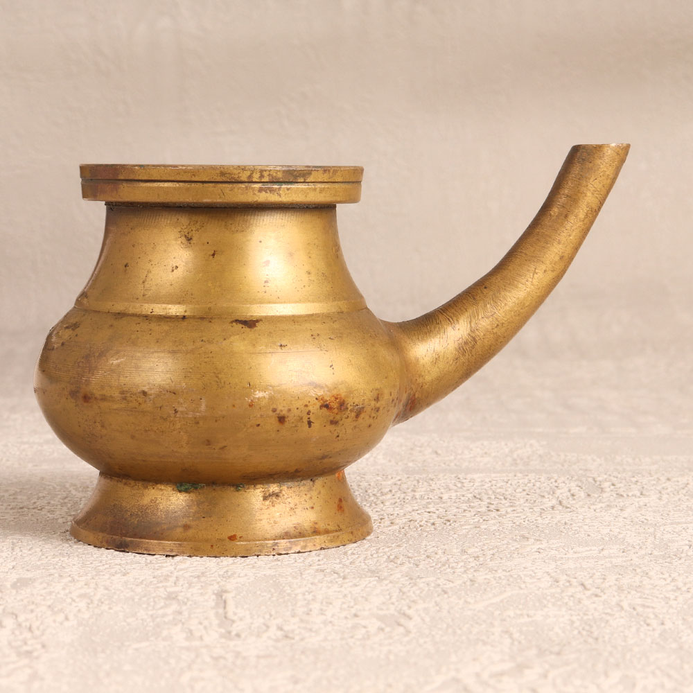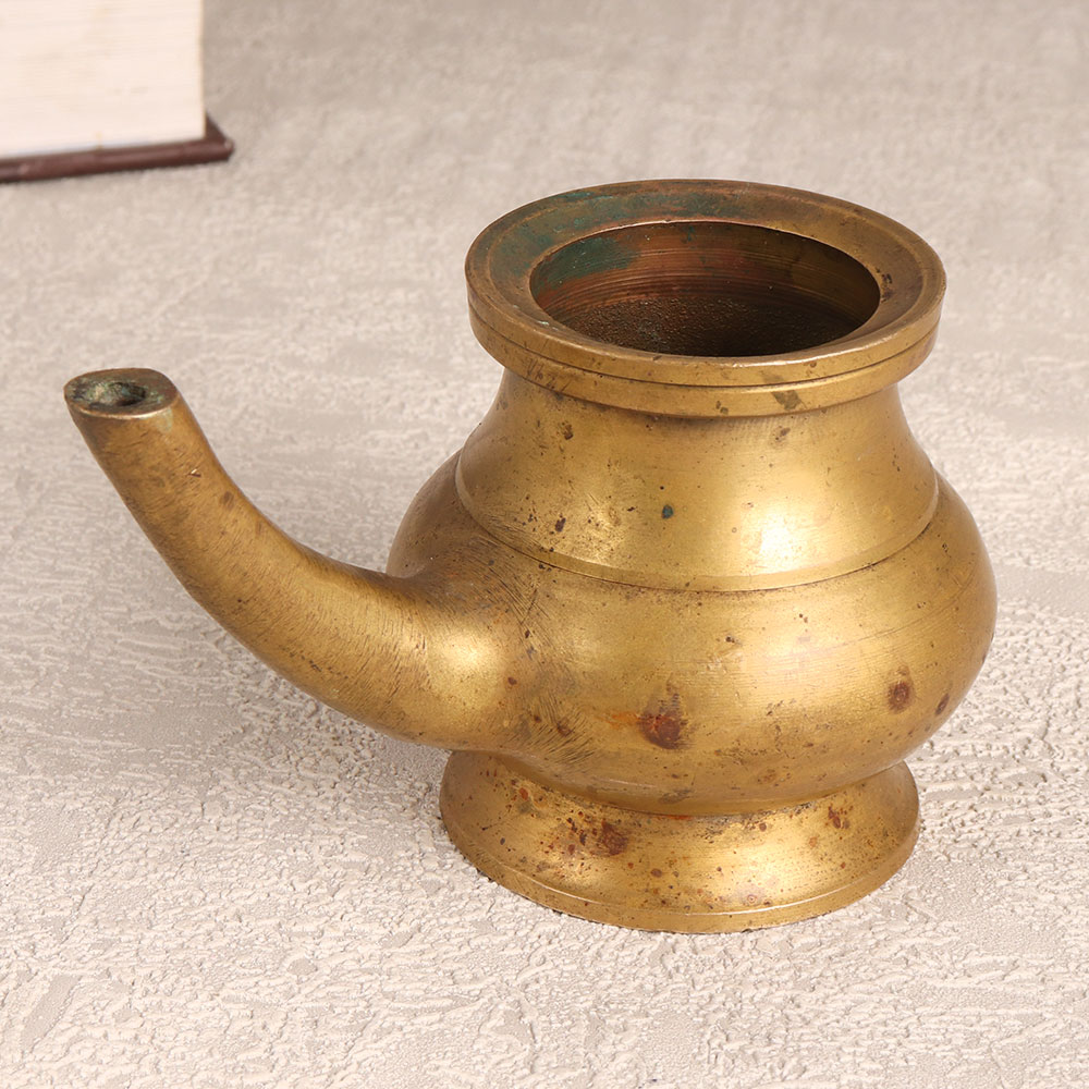 Buy a Brass Sagar Pot with Spout online which is a sacred vessel intricately crafted by highly skilled and experienced Indian craftsmen in the time-honoured tradition of South Indian Art. Made from finest-quality brass, this sagar pot features an antique brown finish, adding a touch of vintage charm to your surroundings. Primarily designed for holding holy water during prayers, its elegant spout allows for precise pouring during religious rituals. Beyond its spiritual significance, this versatile pot doubles as a stunning centerpiece for floral arrangements, making it a graceful addition to your home, office, restaurant, hotel, or cafe. Each pot is a testament to the craftsmanship of the artisans, showcasing their dedication to precision and aesthetic appeal. The antique brown finish exudes a timeless allure, making it a delightful addition to any decor style. This handmade masterpiece is not only a symbol of spiritual devotion but also a unique piece that can be proudly displayed or gifted on special, festive, or auspicious occasions.