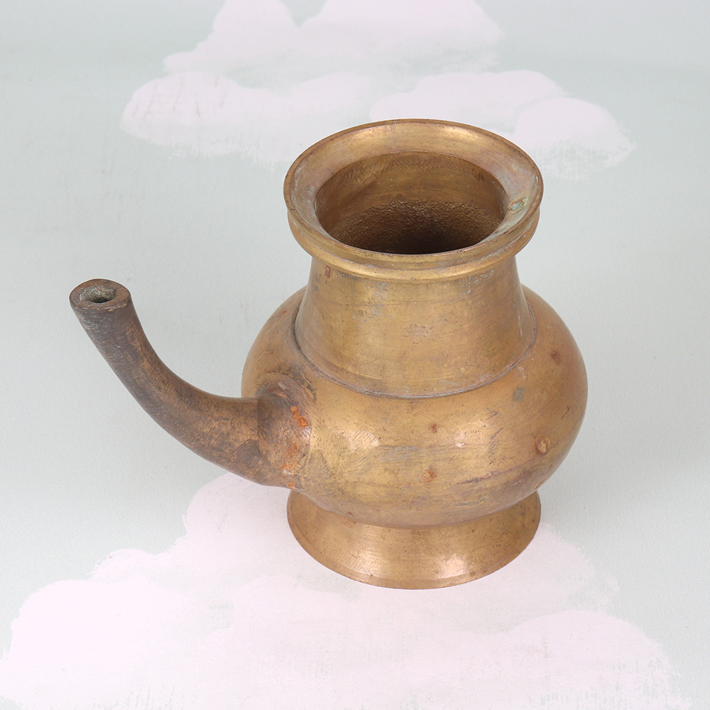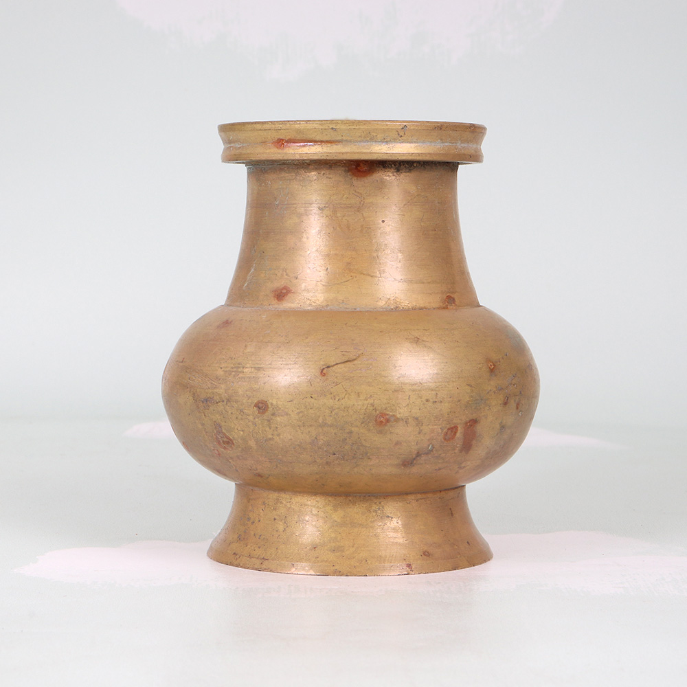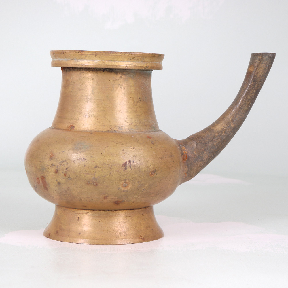 Immerse yourself in the captivating essence of South Indian sacred tradition with this exquisite vintage brass holy water pot. Crafted with meticulous attention to detail, this heirloom-quality piece emanates a timeless elegance that will transport you to the heart of ancient spiritual practices. This holy water pot is more than just a beautiful object – it's a vessel that connects you to the rich cultural heritage of South India. Infuse your sacred space with the serene energy of this captivating artifact, and let it become a central part of your meditation, prayer, and cleansing rituals. Whether you're looking to deepen your personal spiritual journey or seeking a thoughtful gift for a loved one, this exquisite piece will become a cherished companion on the path of enlightenment. Embrace the revered traditions of South India and let this holy water pot inspire a profound connection to the divine. Experience the transformative power of this timeless treasure as you incorporate it into your daily spiritual practice and create lasting memories steeped in cultural significance. Elevate your sacred rituals and embark on a journey of self-discovery with this stunning vintage brass holy water pot.