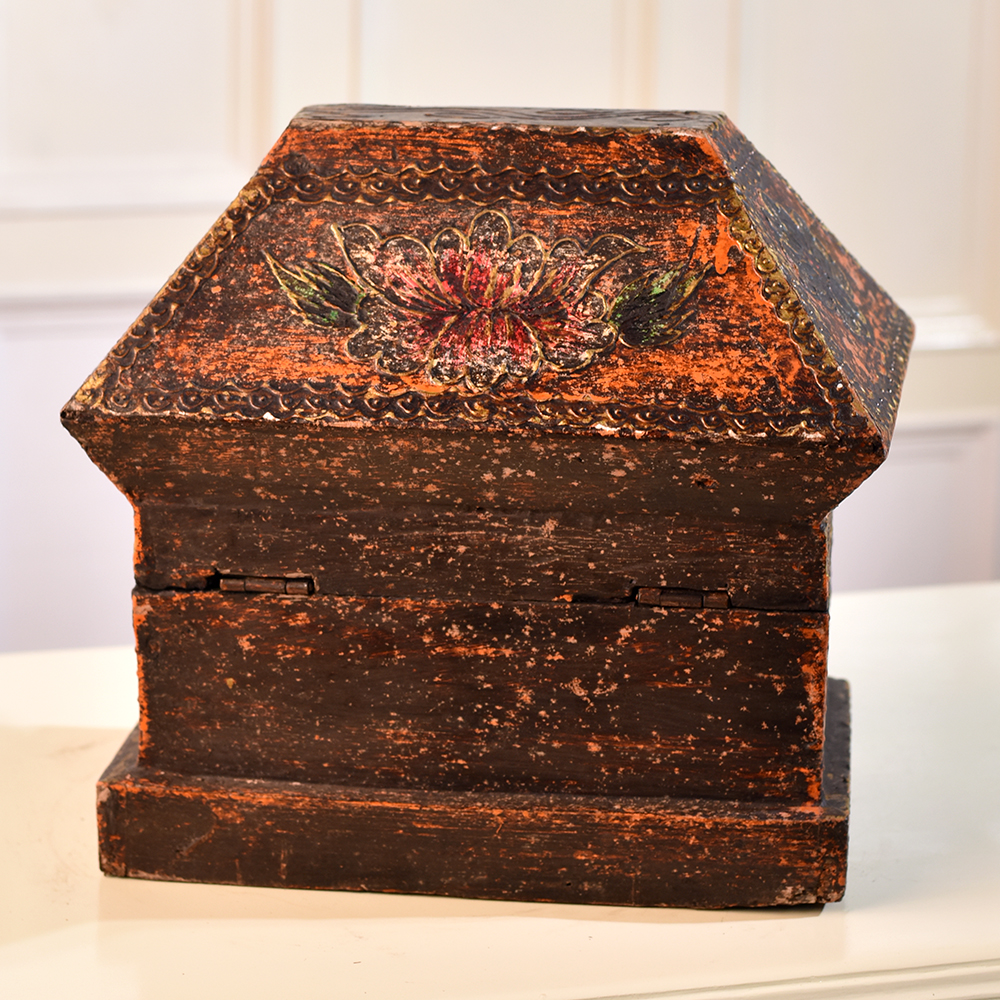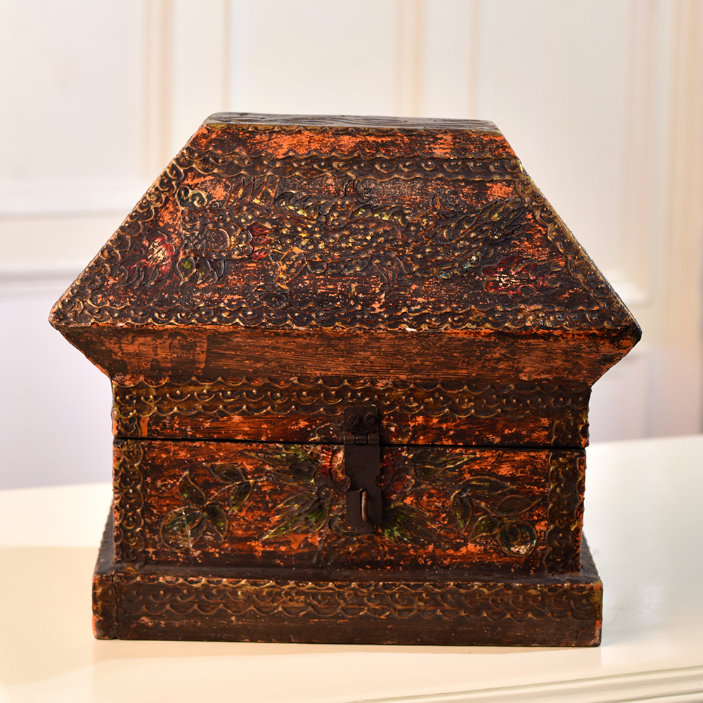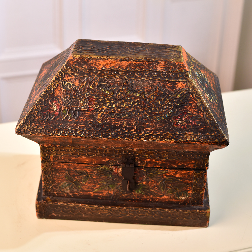 Buy a Wooden Hut-Shaped Jewelry Box online and get a hassle free delivery right at your doorstep. This charming box is crafted with precision by highly skilled Indian artisans, featuring a warm brown finish that adds a touch of rustic charm to any space. The hut-shaped design not only serves as a unique storage solution but also doubles as a delightful decorative piece, ideal for enhancing the ambiance of your home, office, cafe, restaurant, or hotel. What sets this wooden box apart are the intricate engravings of delicate flowers that adorn its surface, creating a visual masterpiece that captivates the eye. The floral motifs add a touch of nature-inspired beauty, making it a perfect addition to any setting. The sturdy latch ensures the safety of your precious jewelry or small items while adding a vintage touch to the overall design. Versatile and stylish, this wooden box is not confined to private spaces. It makes a striking display at exhibitions, showcasing its craftsmanship and aesthetic appeal. Moreover, it becomes a thoughtful and meaningful gift for your family, friends or relatives on special, festive, or auspicious occasions, creating lasting memories and adding a touch of sophistication to their lives.
