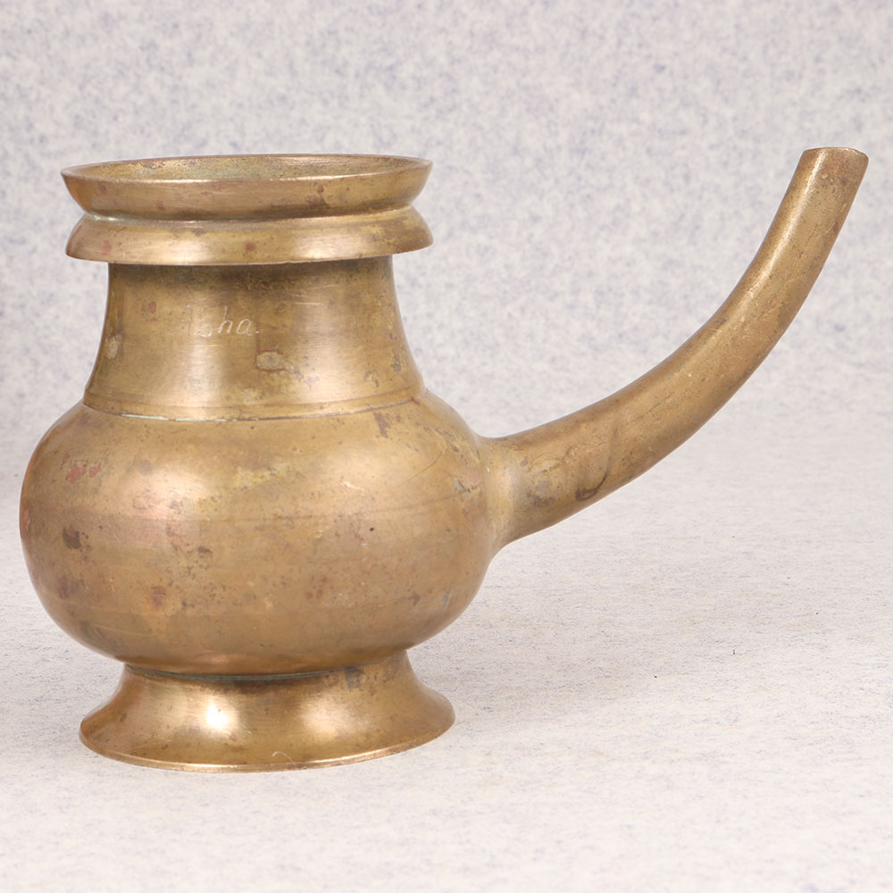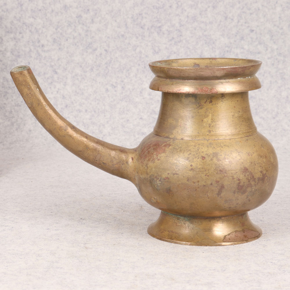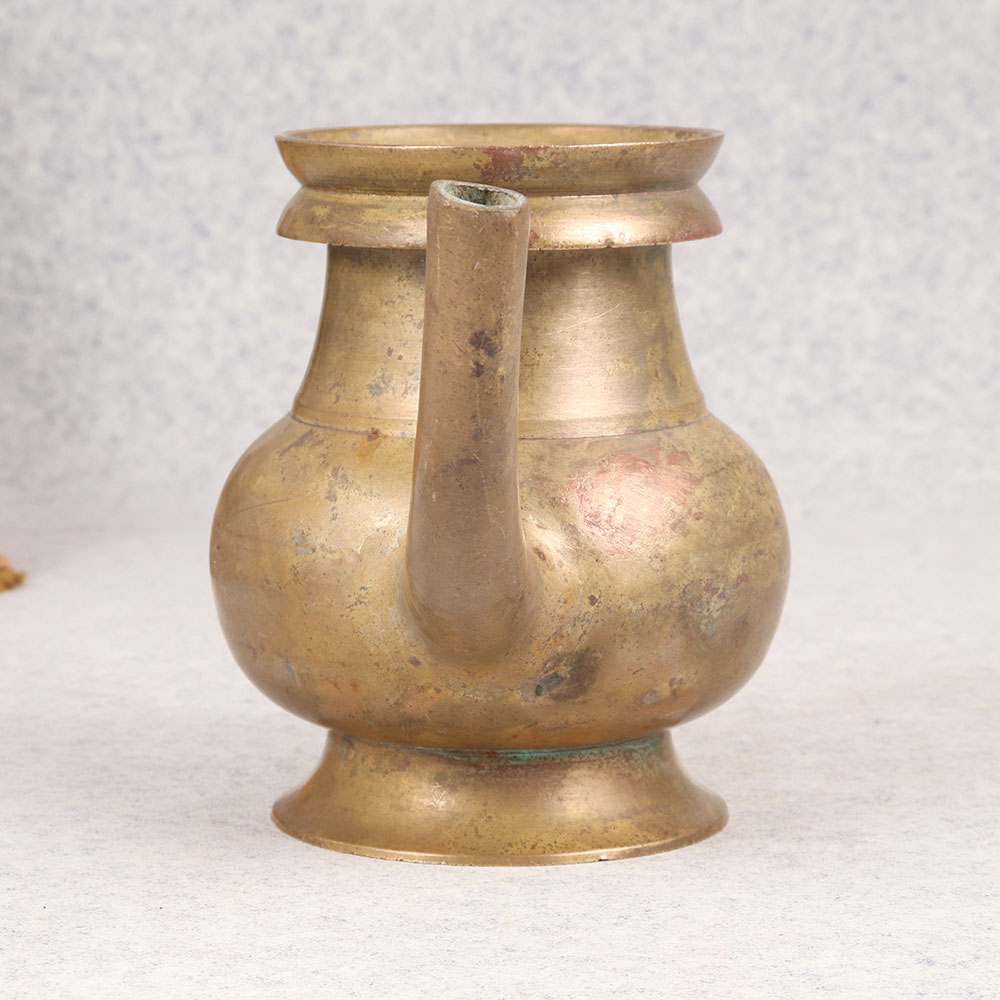 Embrace the timeless charm of our Vintage Brass Sagar Water Pot with Spout that is a sacred artefact steeped in tradition and craftsmanship. Handmade by professional Indian artisans, this piece boasts a rich antique brown finish, adding an aura of heritage to any space. Originally designed for rituals and prayers at temples, it seamlessly transitions into contemporary settings, making it a versatile addition to your home, office, restaurant, hotel, or cafe prayer room. Crafted from high-quality brass, each pot is a testament to the artisan's dedication and mastery, ensuring durability and authenticity. Its elegant spout allows for easy and precise pouring during ceremonies. Beyond its spiritual significance, this water pot serves as a captivating decorative item, complementing various interiors. Elevate your vintage collection or present it as a thoughtful gift to your family, friends or relatives on special, festive, or auspicious occasions.