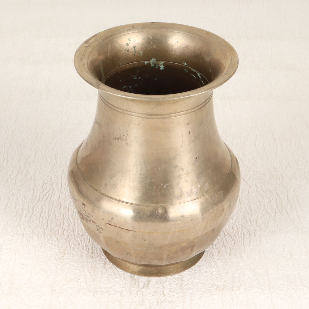 Enhance your spiritual sanctum with the timeless elegance of our Vintage Brass Holy Water Pot. Handcrafted by highly talented Indian artisans in the revered South Indian Art tradition, this piece is a testament to craftsmanship and devotion. Made from high-quality brass, the pot boasts an antique brown finish, adding a touch of antiquity and charm to any sacred space. Versatile and sacred, this holy water pot is a perfect companion for prayers, rituals, and havans, gracefully holding the purity of consecrated water. Its ornate design is not only a symbol of reverence but also an aesthetic addition that complements any home, office, restaurant, hotel, or cafe prayer room. Embrace the divine ambiance as the pot doubles as an indoor flower pot, bringing a touch of serenity to your surroundings. This unique artefact transcends its spiritual purpose, making it an ideal addition to your vintage collection. As a thoughtful gesture, consider gifting this brass holy water pot to your family, friends or relatives on special, festive, or auspicious occasions.