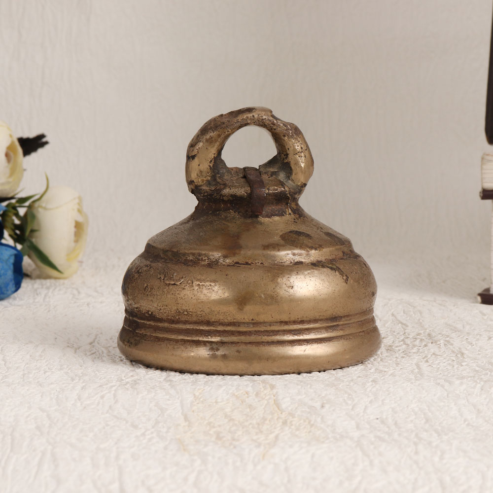 This Vintage Bell Metal Bell with a charming hanging loop is crafted in an antique brown finish. Handmade by talented Indian artisans in the traditional Himachal Art style, this bell embodies the rich heritage and craftsmanship of India. Crafted from high-quality bell metal, this bell not only boasts a rustic aesthetic but also resonates with a melodious chime that adds a touch of nostalgia to any space. Its versatile design makes it suitable for various settings, be it your home, office, restaurant, hotel, cafe, or shop. It effortlessly complements both contemporary and vintage themes. This beautiful bell serves multiple purposes, from a decor accent to a temple hanging or a prayer room adornment. Its timeless elegance can also grace exhibitions, showcasing its intricate design and cultural significance. Additionally, it makes for a thoughtful and cherished gift for your family, friends or relatives on special, festive, or auspicious occasions, symbolizing blessings, peace, and prosperity.