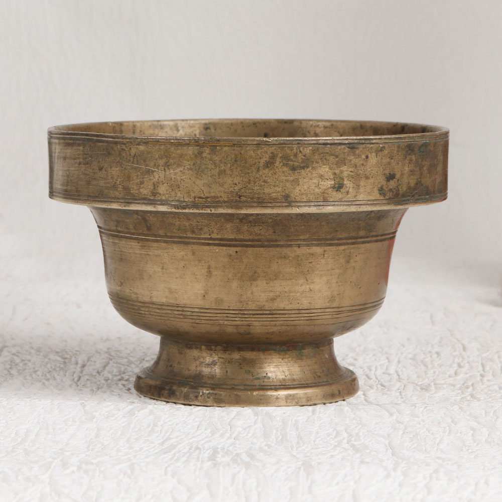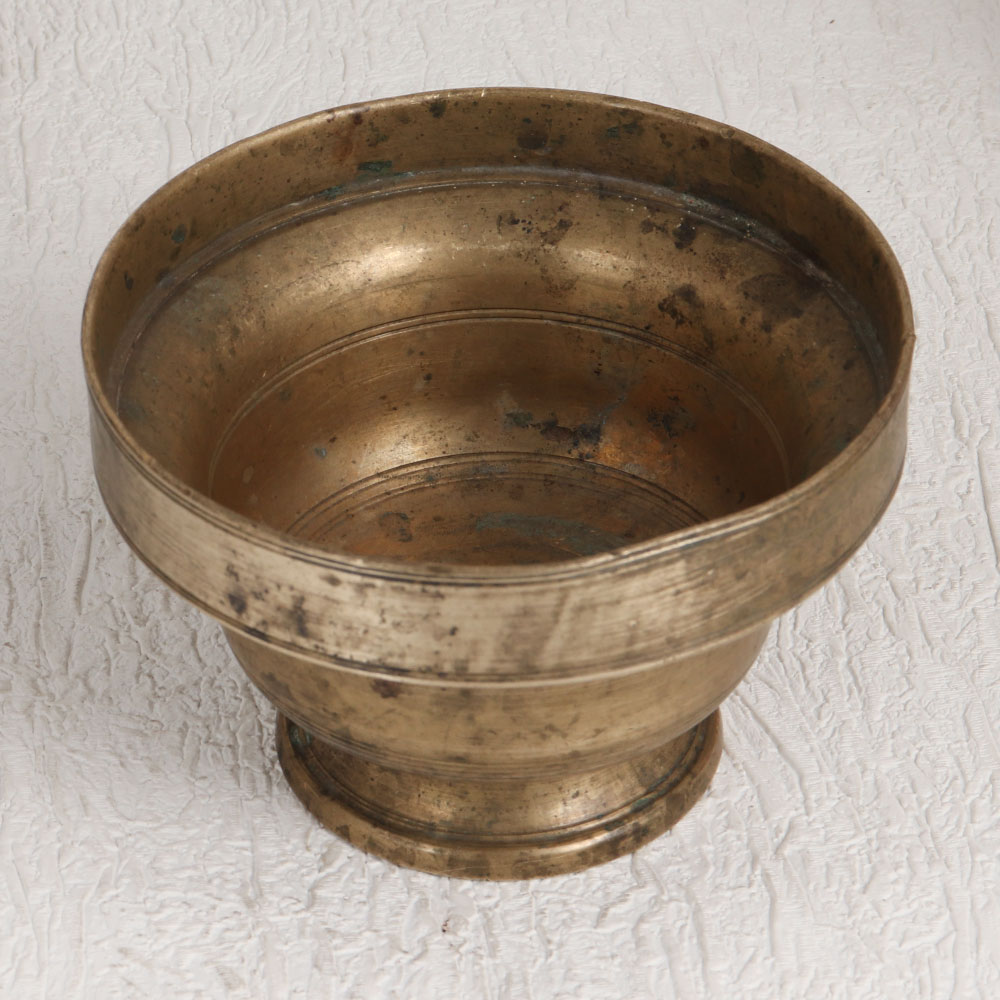 Buy a Vintage Brass Kumkum Bowl in an enchanting antique brown finish which is a true masterpiece of craftsmanship and artistry. This piece is handcrafted by highly skilled Indian artisans, following the time-honoured traditions of South Indian Art. Crafted from high-quality brass, it exudes an aura of vintage elegance that will effortlessly elevate any space. Versatile and captivating, this kumkum bowl can find a place in your home, office, restaurant, hotel, cafe, or shop, where it serves as a captivating decorative element. Its ornate design and rich patina make it a conversation starter, whether placed on a mantel, shelf, or table top. Beyond its aesthetic charm, this kumkum bowl holds a deeper significance. It is traditionally used during prayers to store kumkum tilak, adding a touch of spirituality to its allure. For collectors of vintage treasures or curators planning exhibitions, this bowl is a must-have addition. Moreover, it makes for a thoughtful and meaningful gift, perfect for special, festive, or auspicious occasions.