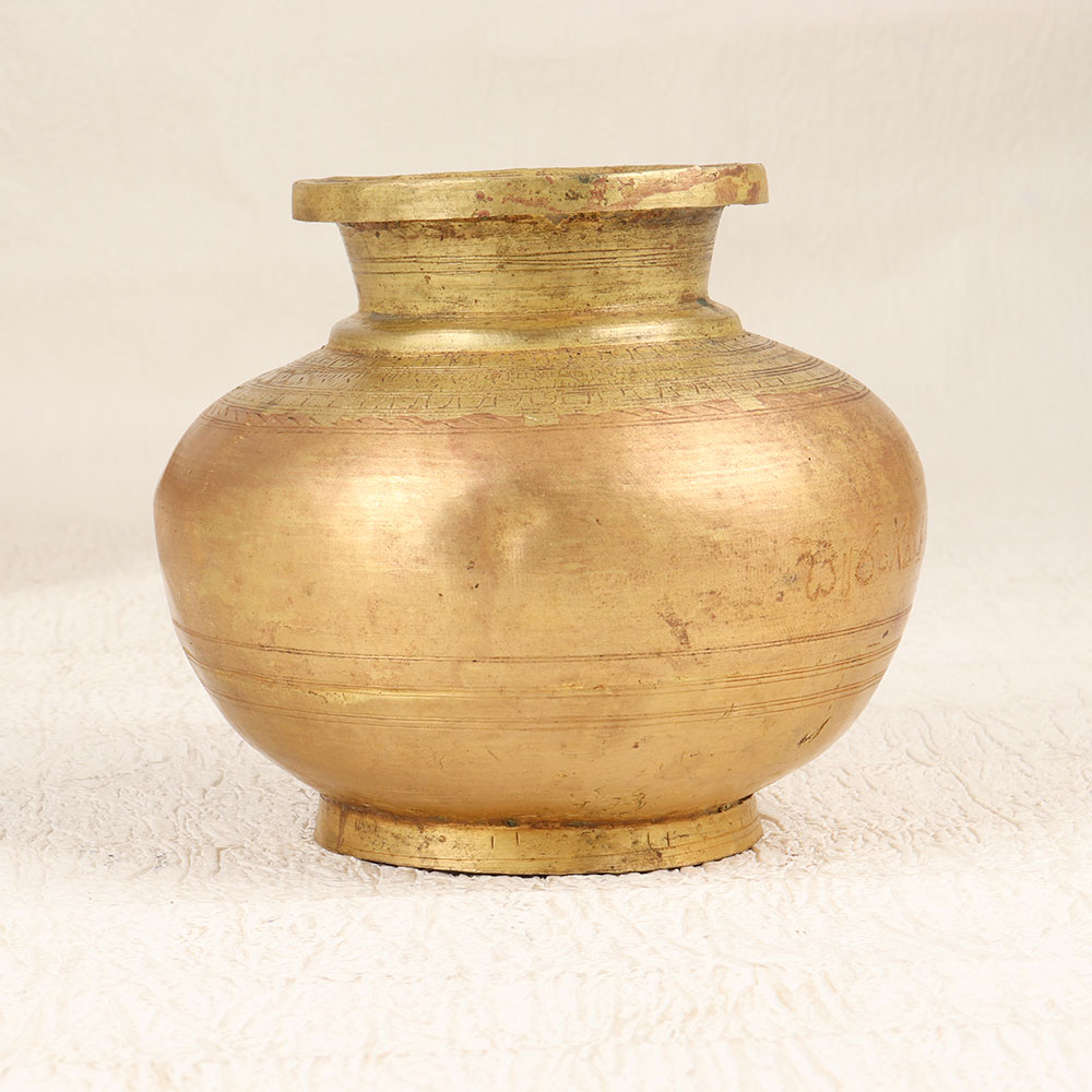 Steeped in antiquity, this engraved vintage brass holy water pot invokes the sacred. Its handcrafted detail and brown finish give it an heirloom look that feels plucked from the past. Let this pot bring a whisper of ritual and tradition into your home. Place it near your prayer space or altar to have holy water on hand for spiritual cleansing and blessing. The vintage styling gives it a timeworn, handcrafted look that feels like an artefact from ages past. With its ornate details, this pot makes a thoughtful gift or decor accent for anyone who wants to infuse spaces with meaning. Its craftsmanship and intrigue add elegance to any room. For those who appreciate relics of the past, this pot makes sacred tradition feel relevant in the present. Allow its finish and aura of antiquity to transport your home to another time.
