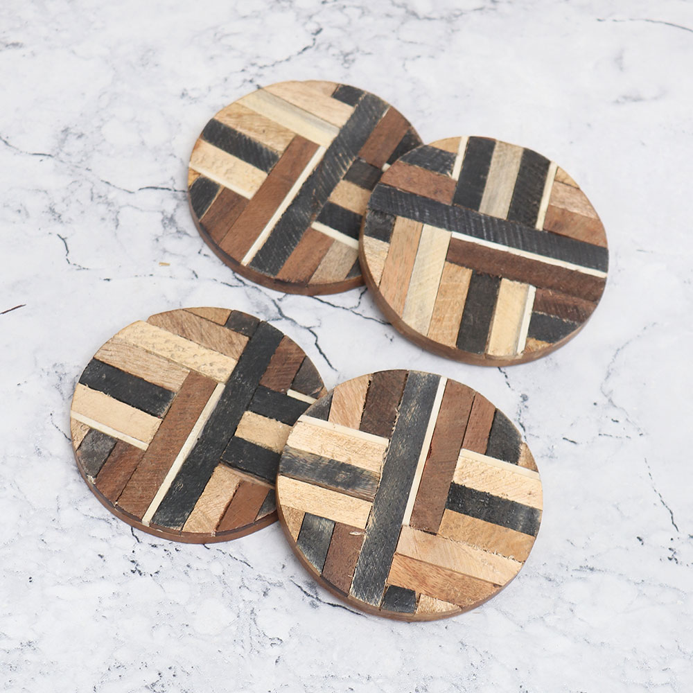 Designed to protect your tables and countertops from damage, these coasters are also an essential decorative accessory. Their antique brown finish and smooth wooden surface offer both protection and style. Whether you’re placing a hot mug or a cold drink on them, these coasters will safeguard your surfaces while adding a rustic charm to your space.