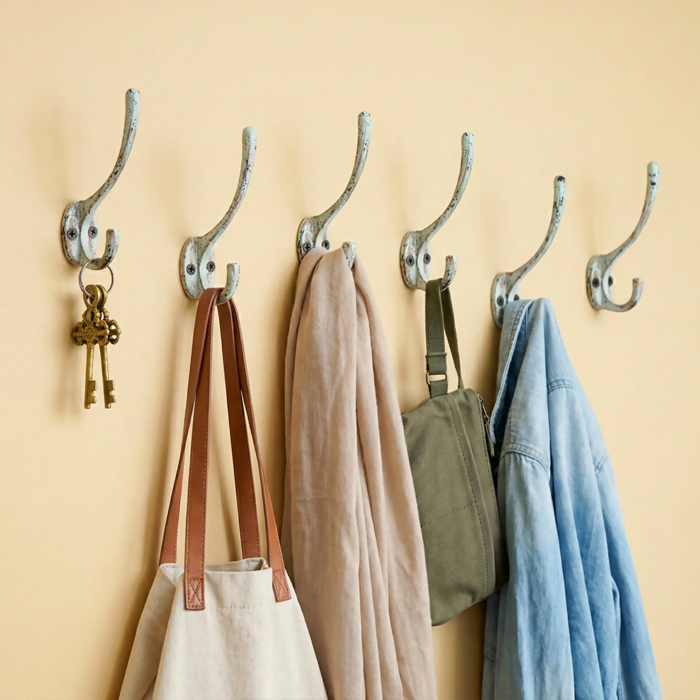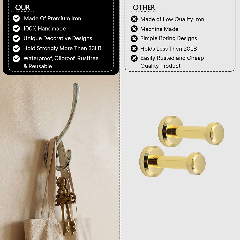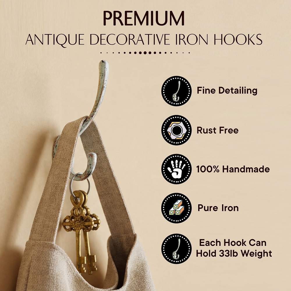 Antique Decorative Iron Hooks. When Put on Wall or Cabinet It is An Art in Itself. Its A Mix of French and English Design. Suitable for Your Kitchen, Cupboard, Rooms, Cabinets, Almirahs, Bathrooms, Doors, Etc.
