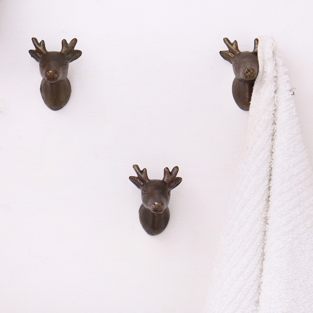 Antique Deer Metal Heavy Duty Wall Hooks-Pack of 3. This Hook is Strong Enough to Hold Your Bags, Hand Towels, Cloths Etc.