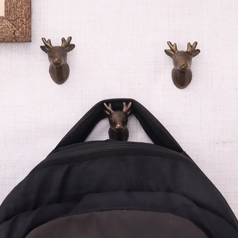 Make a bold, nature-inspired statement with the Antique Iron Deer Heavy Duty Wall Hooks – Pack of 3. These intricately designed wall hooks feature majestic deer heads with antlers, crafted from solid iron and finished in an antique patina that exudes rustic charm. Built to offer both beauty and strength, they combine detailed artistry with practical everyday use. Whether you're organizing your hallway or adding a lodge-style accent, these deer wall hooks bring character and durability into any space.