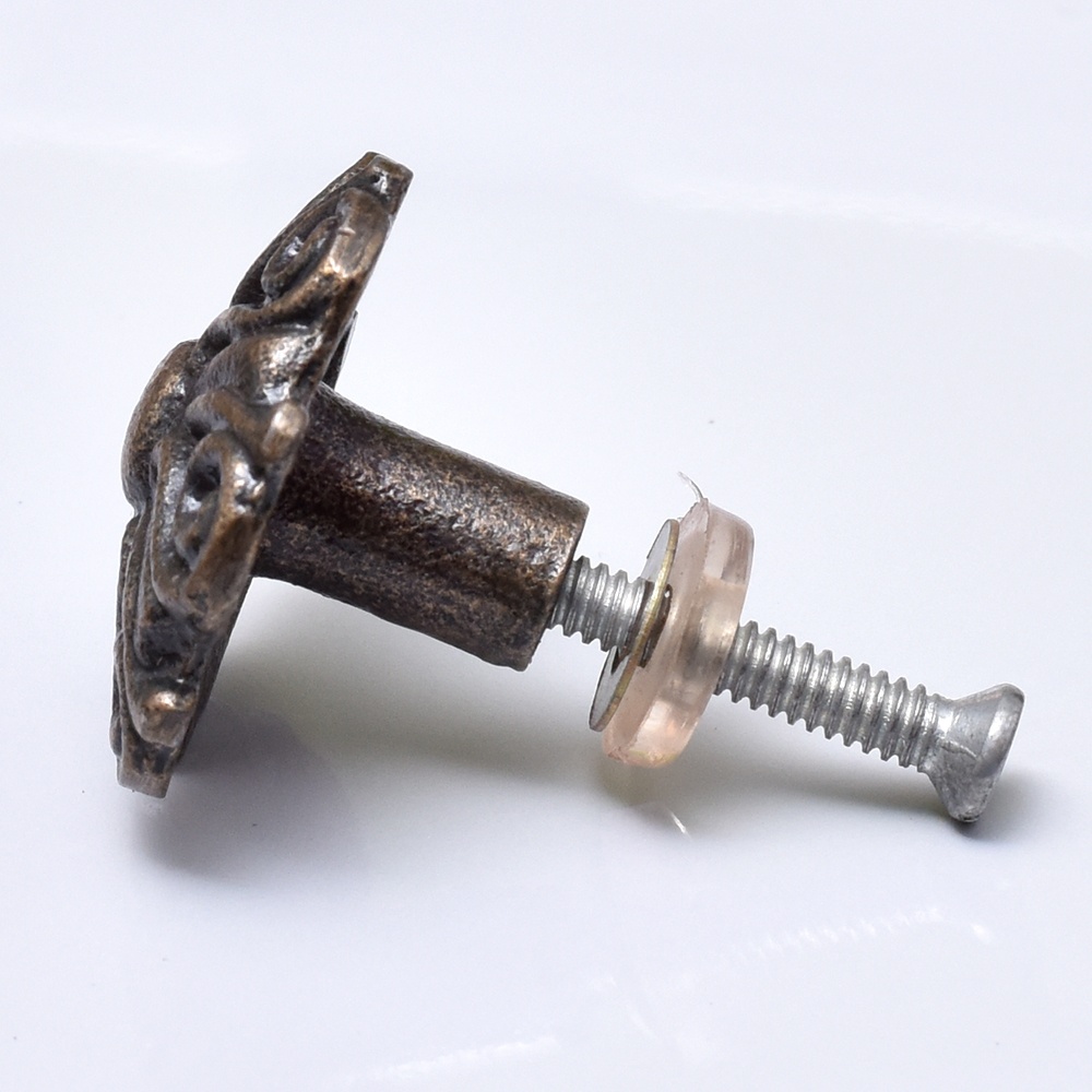 The antique finish of these knobs gives them a timeless look, ensuring they will never go out of style. Their intricate floral pattern makes them a standout piece, bringing character and elegance to any room.