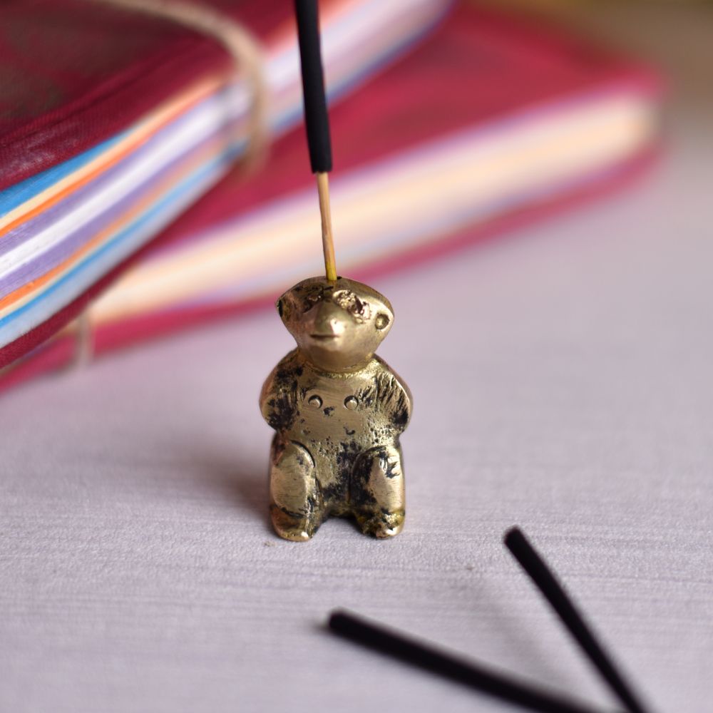 Antique Golden Brass Bear Agarbatti Holder Stand
