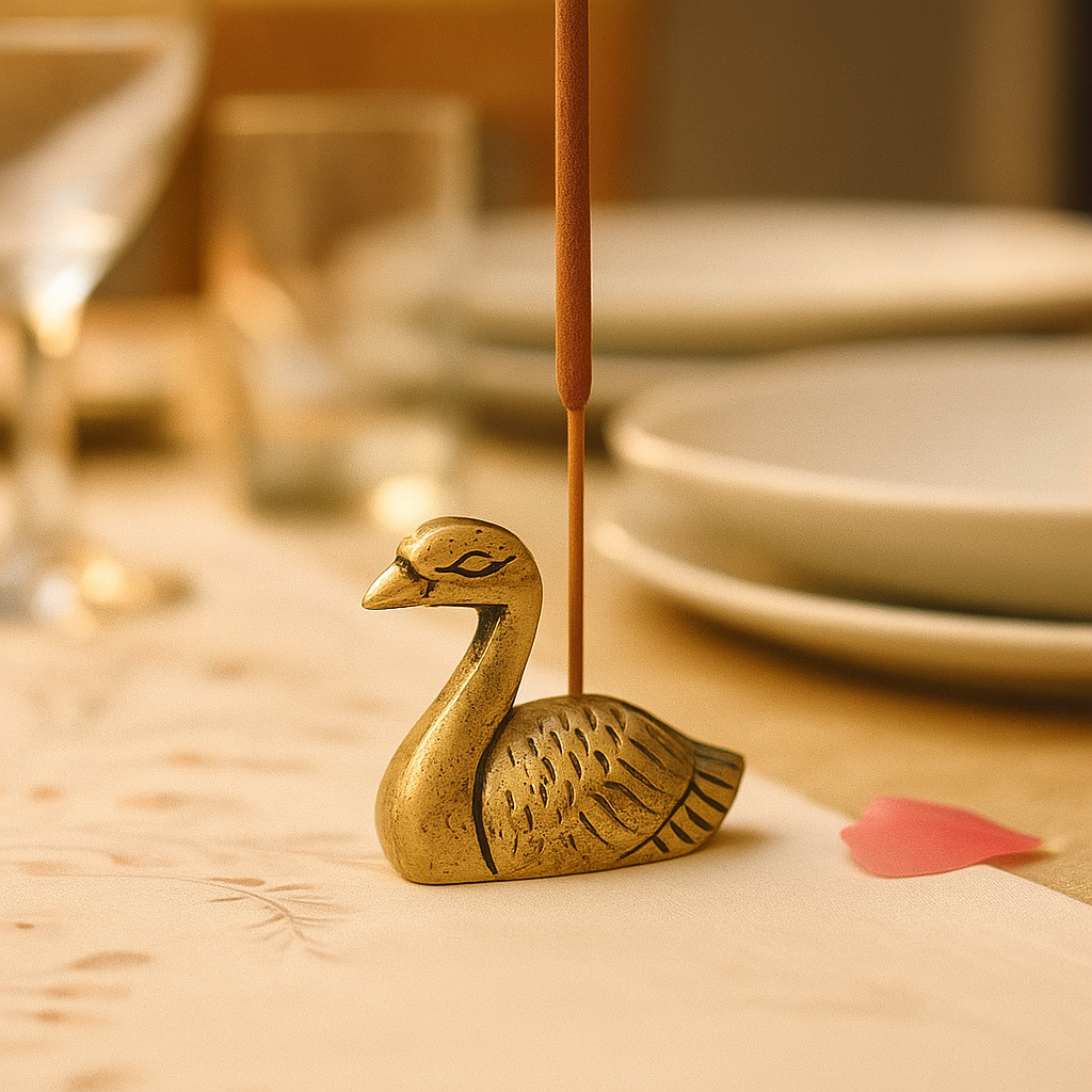 The warm golden hues of the brass finish create an inviting atmosphere wherever it is placed. Whether you’re lighting incense to calm the mind, celebrate a special occasion, or simply create a peaceful ambiance, this mini duck agarbatti holder adds warmth and beauty to your surroundings.