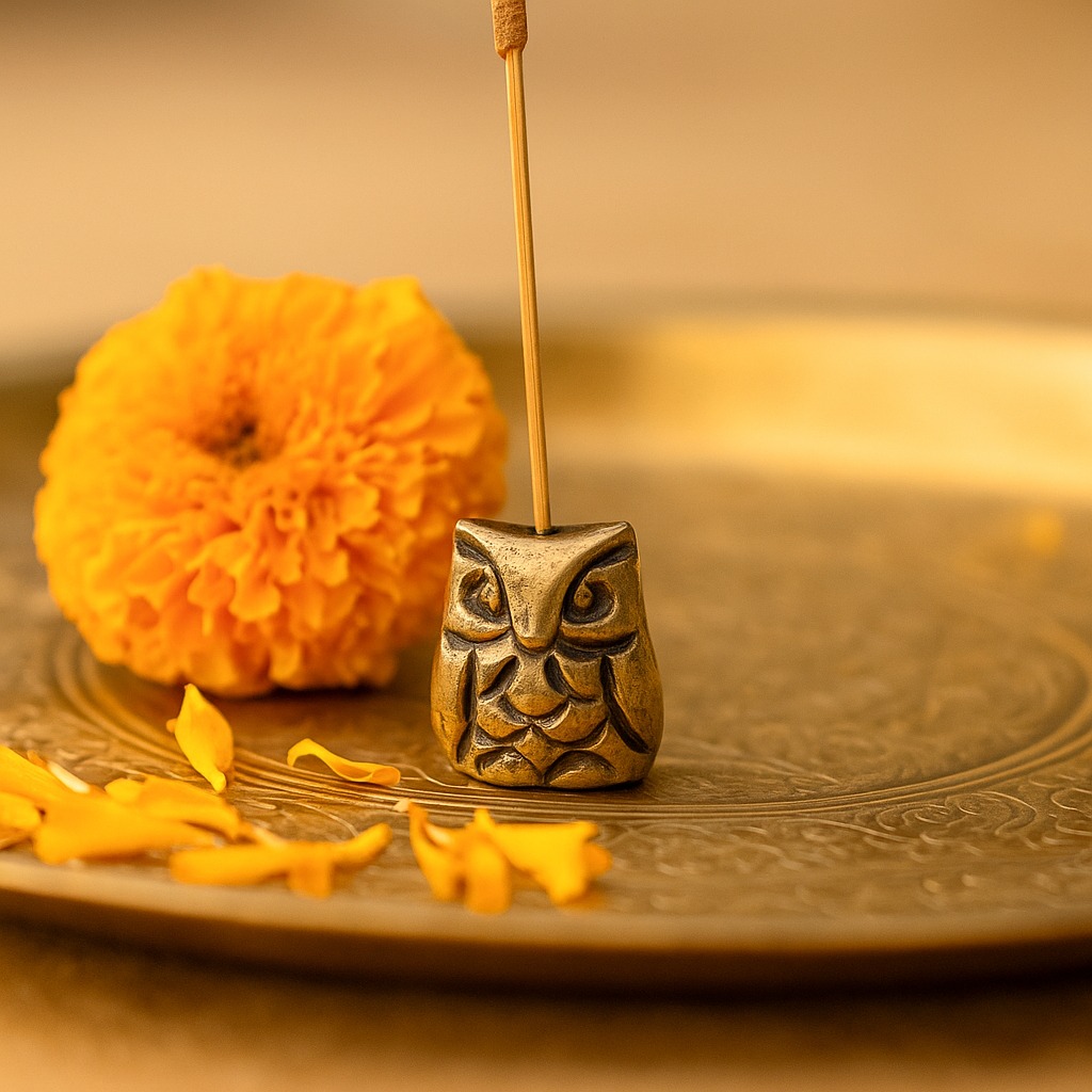 The brass owl-shaped incense burner isn't just for burning incense; in the West, it's regarded as a symbol of intelligence. In Chinese philosophy, the owl is a charm that brings good fortune and happiness. Use it as gift for Diwali, wedding or other festive or religious occasions.