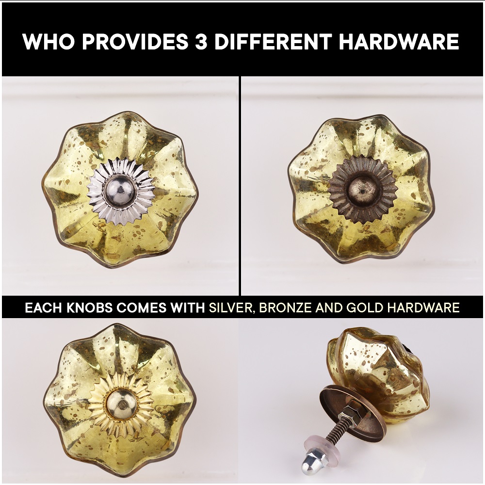 Made from high-quality glass and metal, the Antique Golden Glass Melon Cabinet Knob is designed to last. Its sturdy construction ensures that it will stand up to the rigors of everyday use, while maintaining its beauty over time. The high-quality glass not only gives the knob a lovely, translucent finish but also makes it durable enough to withstand wear. The gold detailing further enhances the knob’s strength and timeless aesthetic, making it a piece that lasts for years.
