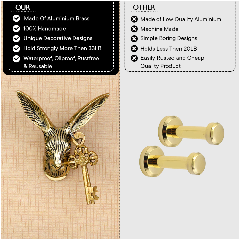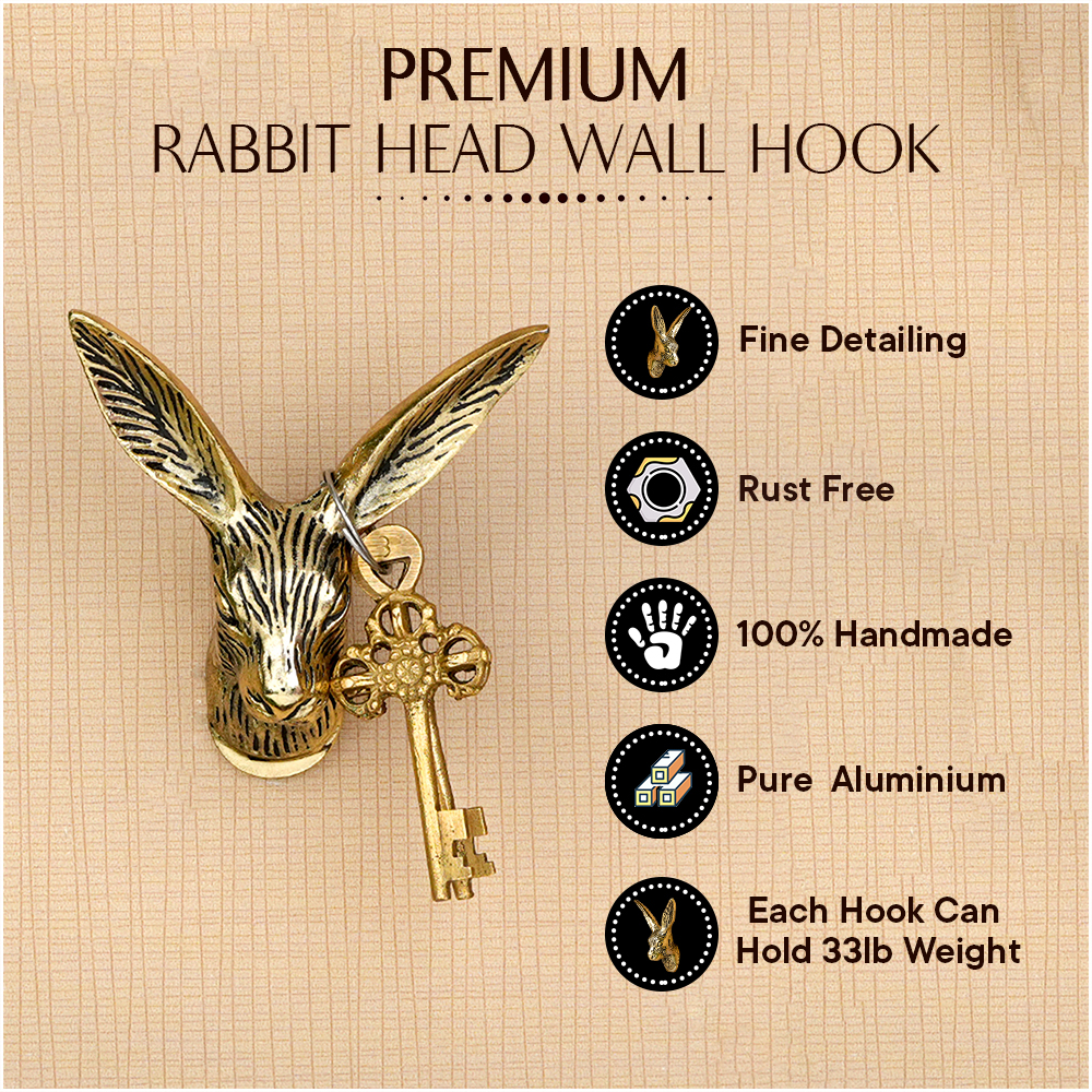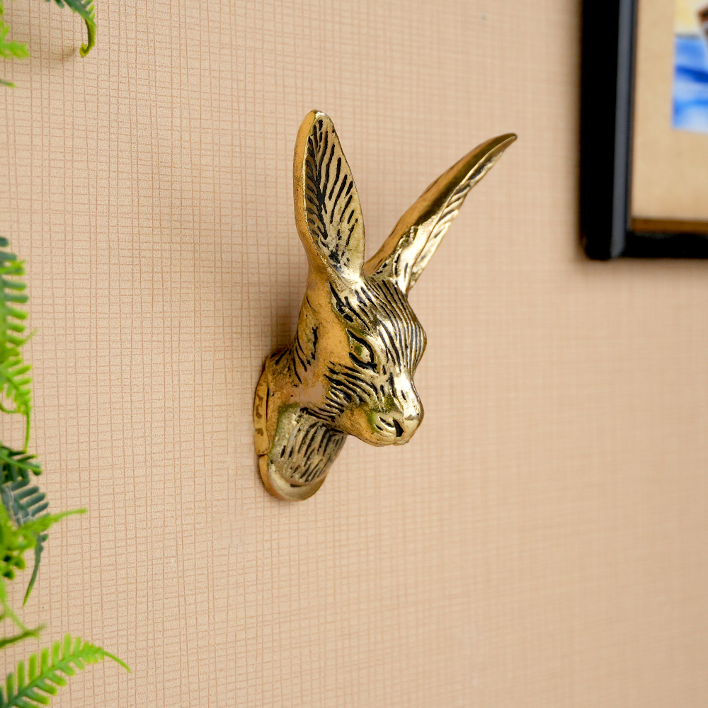 Bring a playful yet elegant charm to your interiors with this Golden Rabbit Head Aluminum Wall Hook. Beautifully crafted from premium-quality aluminum, this hook features a detailed rabbit design with long ears, symbolizing alertness and style. Its shiny golden finish enhances the wall dcor while providing a sturdy hanging solution for everyday use.