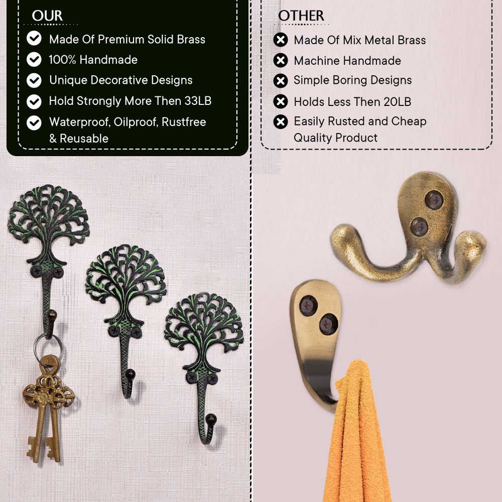 With the Antique Green Brass Tree Hooks for Hanging, you can bring nature and vintage elegance into your home while keeping your space neat and organized. These hooks are perfect for adding a touch of rustic beauty to your home.